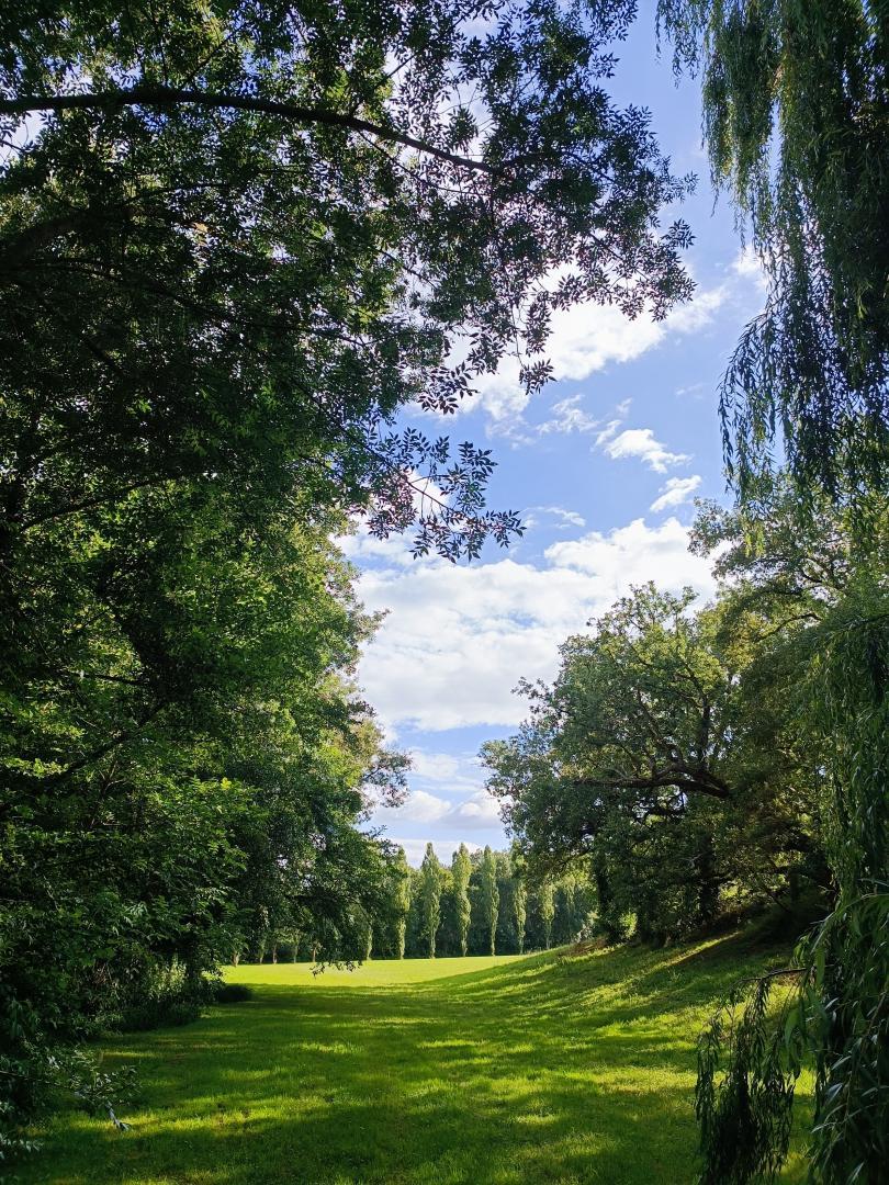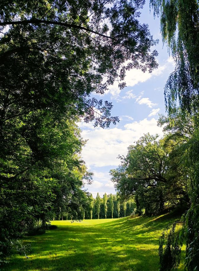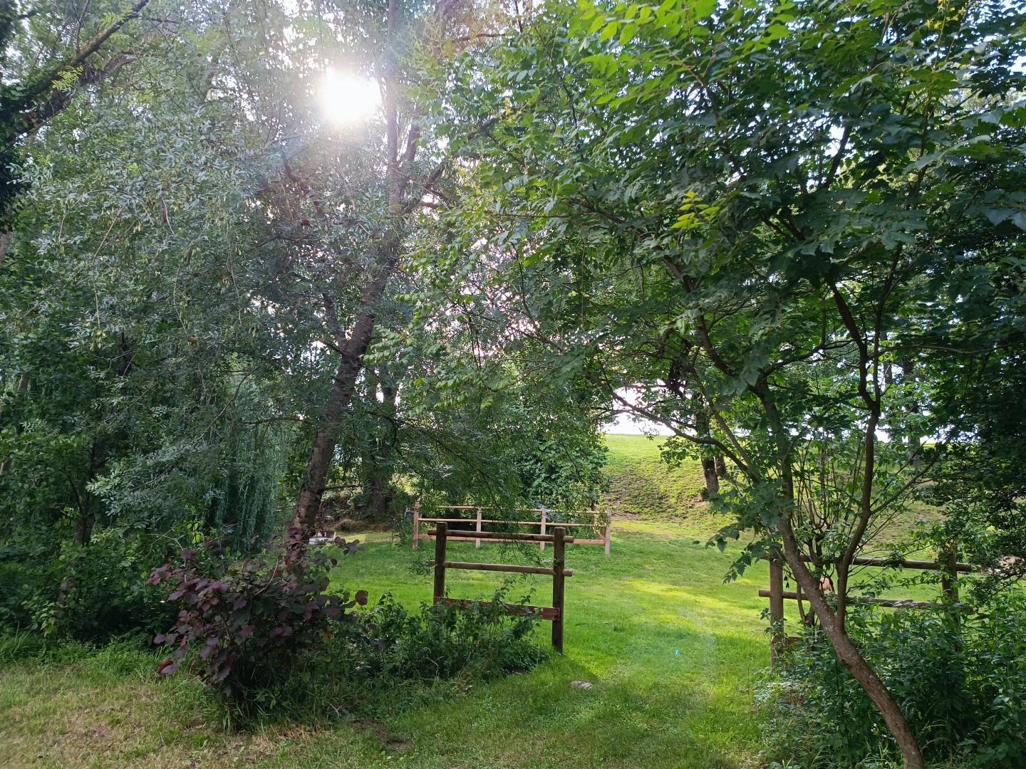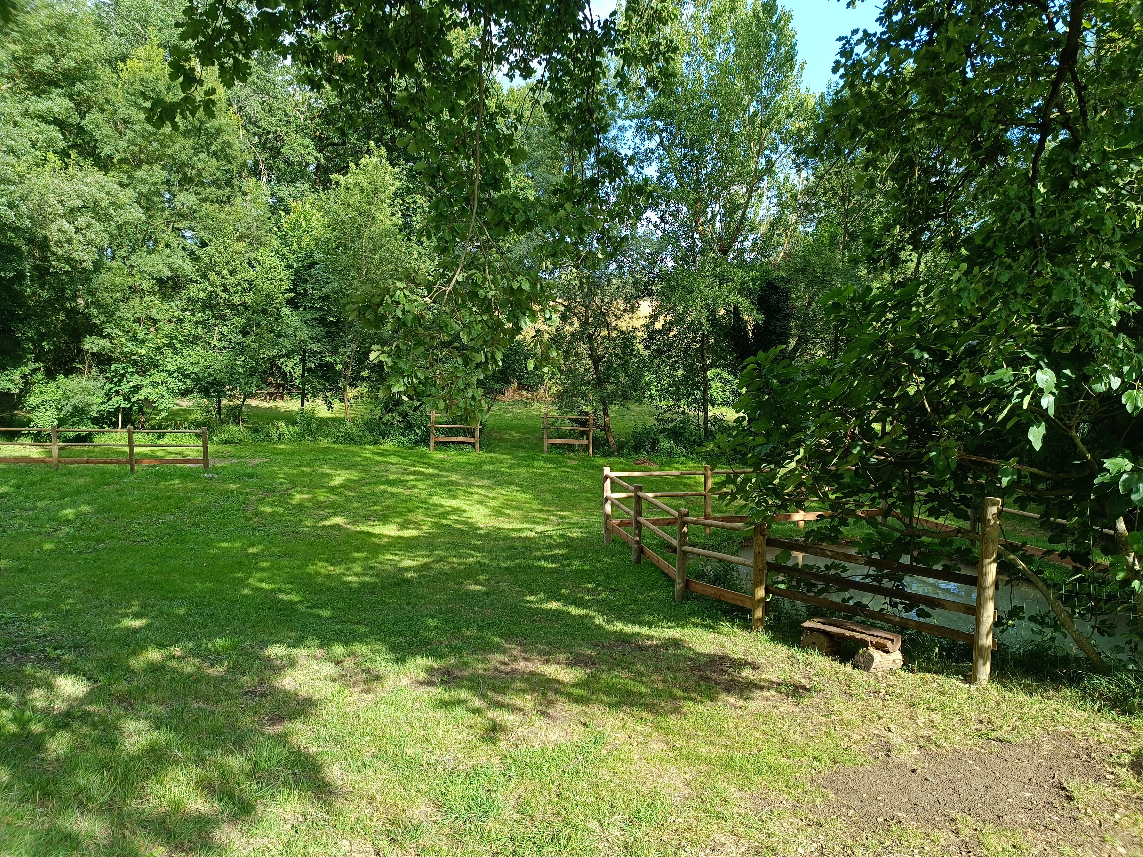 Poursuivez et vous serez bercés par le chant de l’eau le long des berges du petit ruisseau (La Brande) qui serpente jusqu’au allées de peupliers en bas dans la propriété… De quoi se mettre au vert et au frais en été pour pique-niquer, se détendre, jouer en famille ou entre amis…