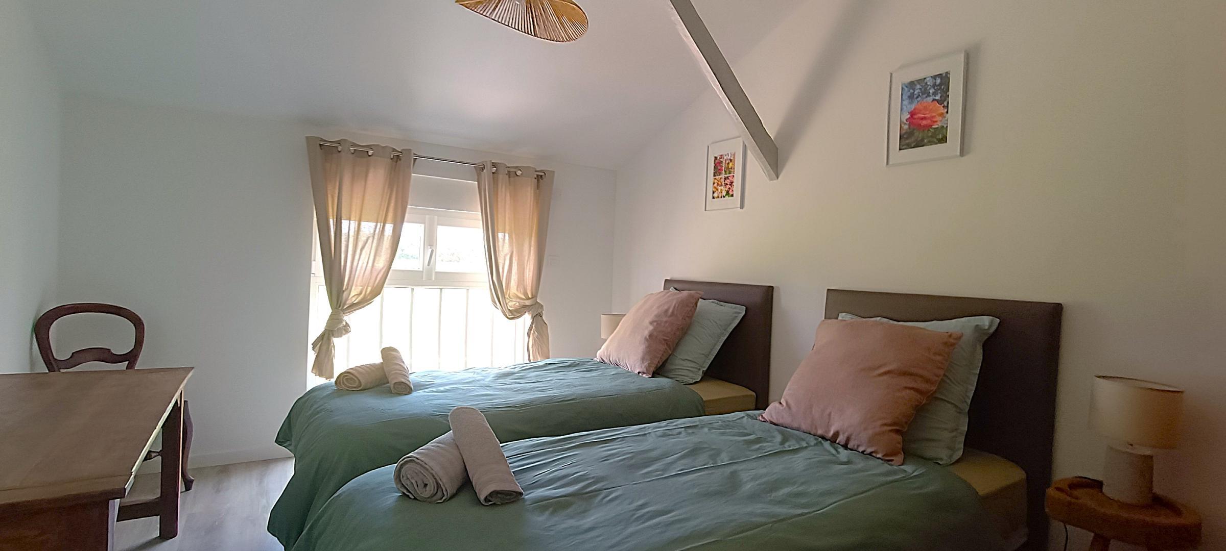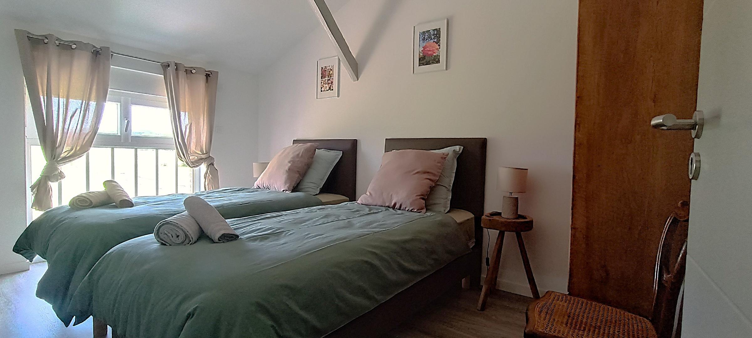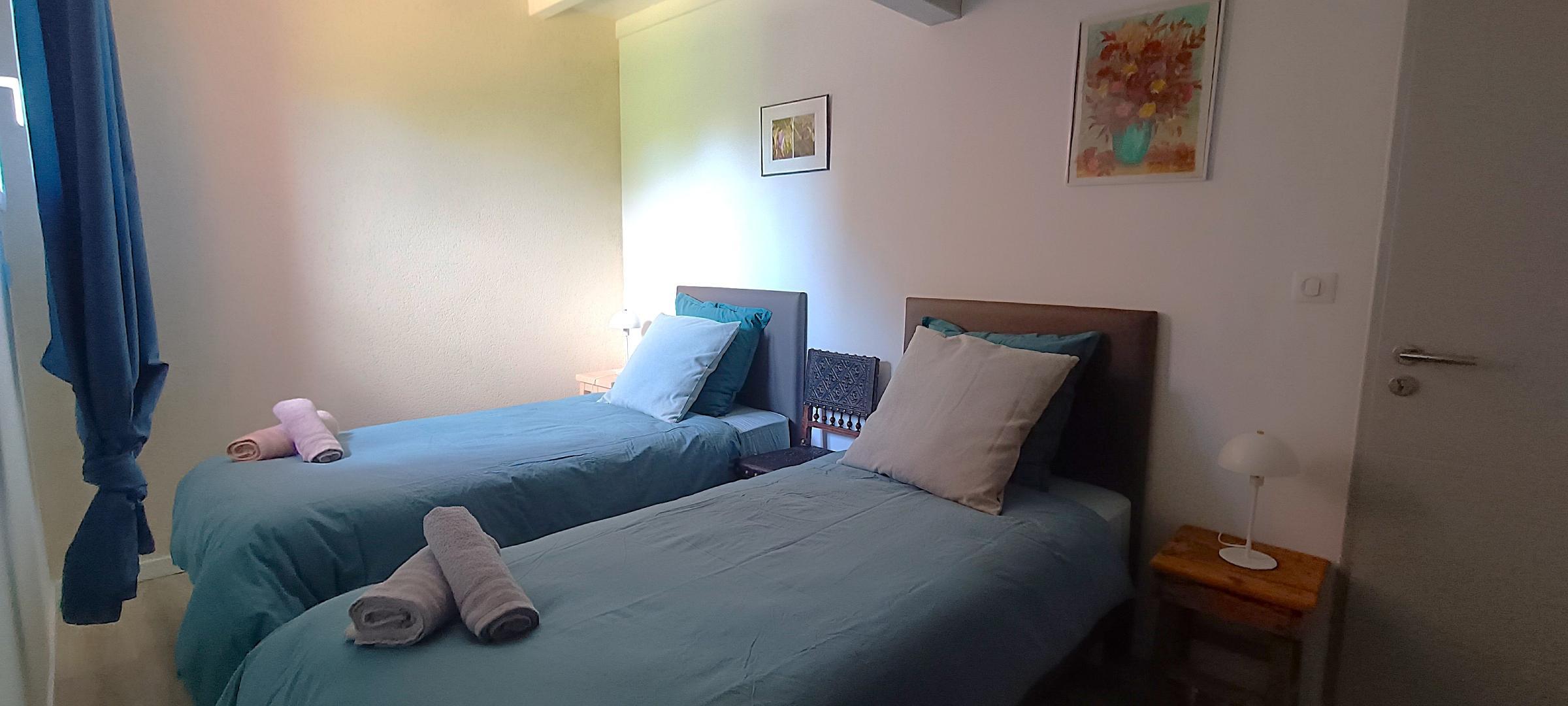 * deuxième chambre (15m²) avec deux lits simples 90x200cm