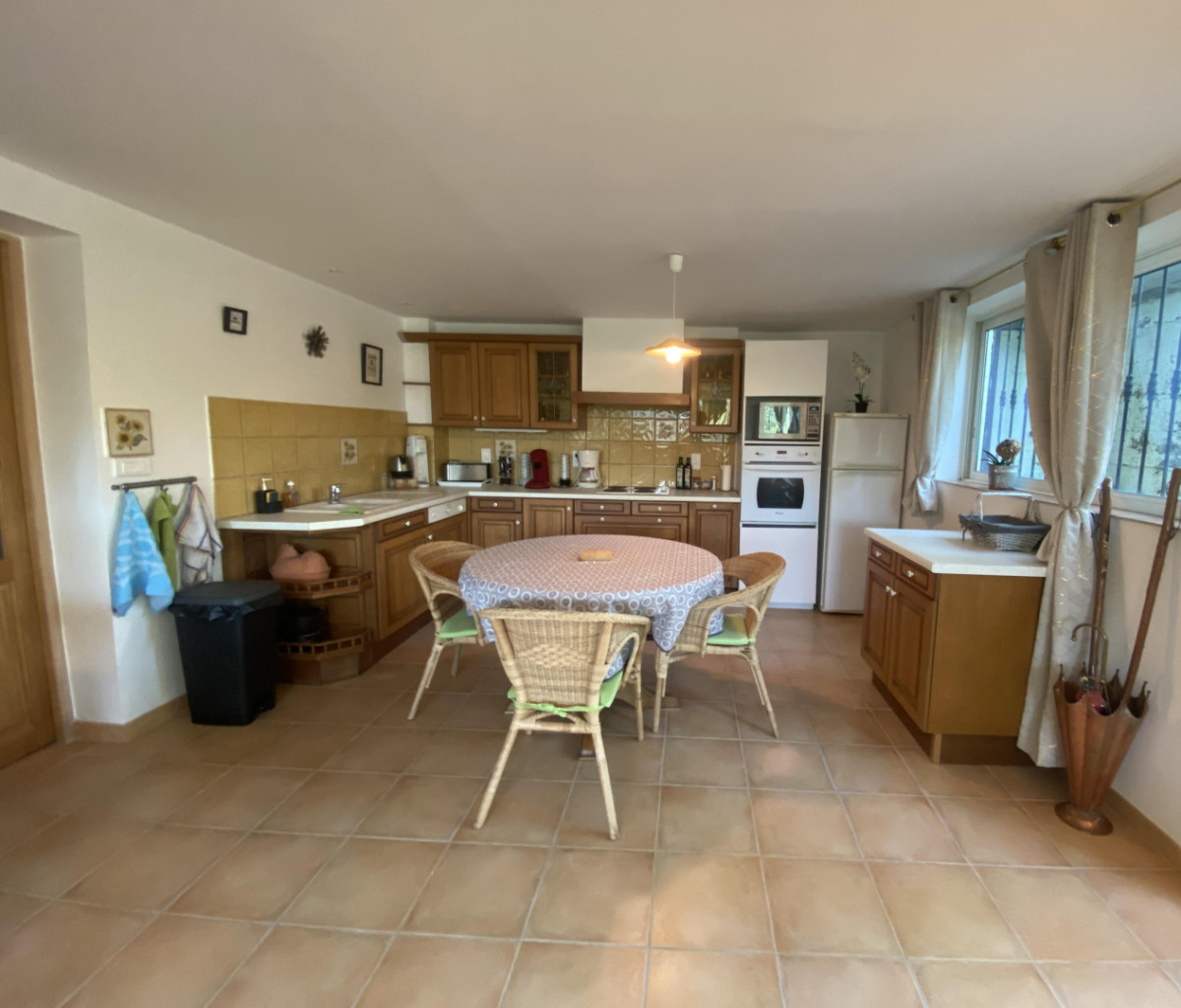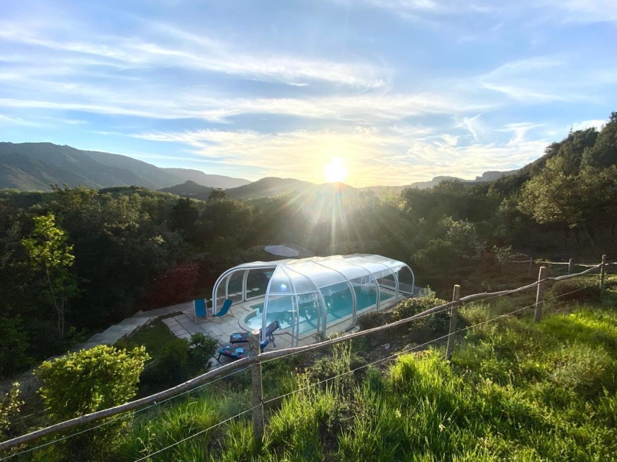 Le gîte se compose d’une grande pièce de vie ouverte de 35 m² avec une cuisine équipée (congélateur, lave-vaisselle, four, petit électroménager..), ainsi qu’un espace salon avec canapé convertible en 140×190, TV et climatisation. Un couloir mène à la salle d’eau avec machine à laver et sèche-linge, un WC séparé et une chambre avec lit superposé en bas de 140×190 et en haut de 90×190. A l’extérieur, profitez d’une terrasse avec barbecue et de la piscine à partager avec les hôtes. (8x4m, profondeur : de 1,50m à 1,65m) Draps et serviettes inclus. Parking privatif. Animaux sur demande (contactez le service réservation au 0468114070). NB : Hébergement situé au rez de chaussée de la maison des propriétaires avec une entrée privative et sans vis-à-vis. ATTRAITS TOURISTIQUES : situé dans le parc du Haut Languedoc possibilités de randonnées pédestres, VTT, escalade. A voir également : lacs (Laouzas, la Raviège), gorges d’Héric, massif du Caroux, Lamalou les Bains, Olargues (plus beau village de France), gorges de l’Orb (canoë kayak à Tarassac), Lacaune (charcuterie).