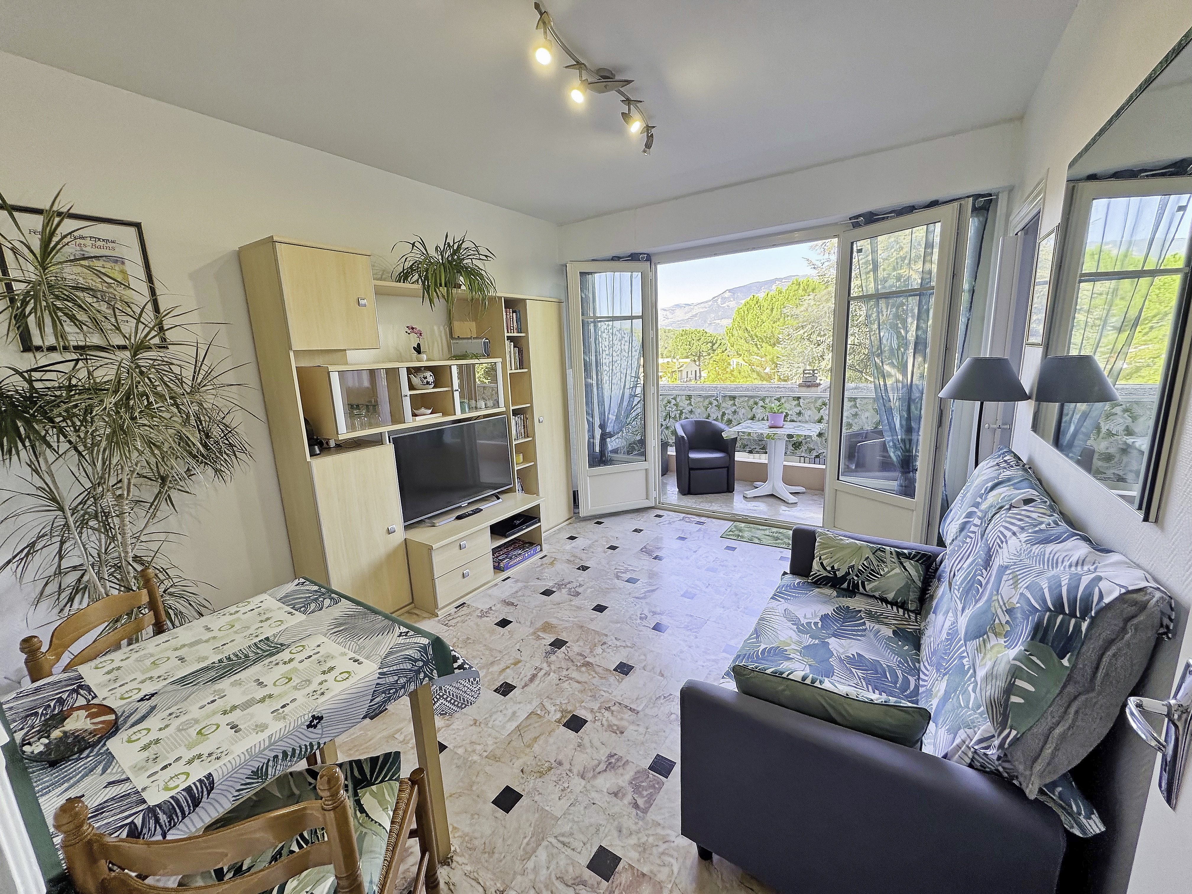 Rénové, composé d’un grand séjour donnant accès à un grand balcon filant, d’une cuisine indépendante entièrement équipée avec verrière, d’une belle salle d’eau équipée d’une grande douche à l’italienne, et d’une petite chambre séparée, donnant sur le balcon panoramique. Un confort cosy… 31 m2 en résidence tout confort sécurisée, 1er étage, ascenseur. Très lumineux, Agréable, Calme, très propre. Moins de 400 m des Thermes et du centre-ville Chambre séparée : lit 140 cm, Sommier tapissier de relaxation, Literie de haute qualité Grand séjour, avec accès au balcon, canapé 2 places, TV 4K 43 pouces TNT, Casque sans fil pour TV, Wifi gratuit (Fibre), Ventilateur, Jeux de société, livres. Cuisine indépendante. Salle d’eau équipée : Sèche-cheveux, WC. Grande Terrasse filante Nord avec vue dégagée. Plus d’infos : https://locanigo.fr