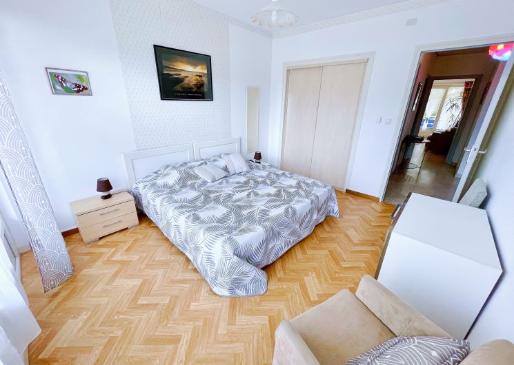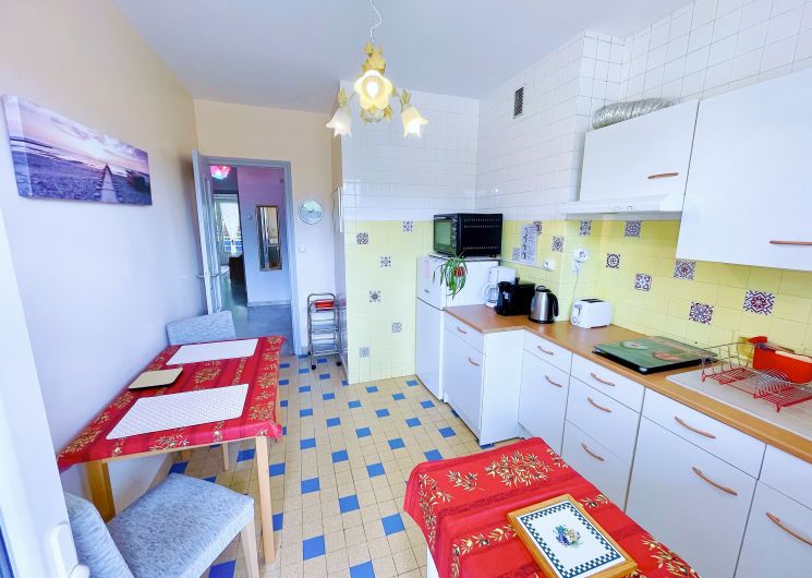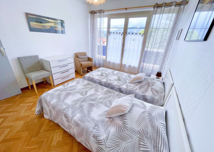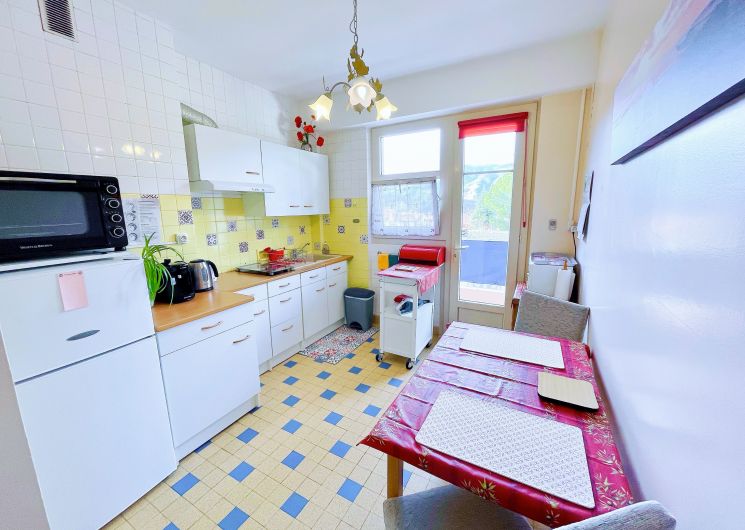 T2 Classé 3 étoiles, traversant de 54 m2 Au calme, spacieux, rénové, composé d’un vaste séjour bien agencé, avec une grande TV LED 43 pouces Full HD, qui donne accès à la terrasse Sud, vue dégagée, d’une cuisine à part entièrement équipée avec accès au balcon panoramique, d’une salle d’eau avec lave-linge, d’un WC séparé, et d’une grande chambre séparée, donnant sur le balcon panoramique. Lumineux, ensoleillé, très Propre, au 1er étage avec ascenseur. Doubles vitrages, Volets roulants électriques, Wifi gratuit (Fibre), Lit King size : 180×190 ou 2 fois 90×190. Un appartement tout Confort ! Résidence sécurisée, chauffage au sol inclus dans les charges, double vitrage, volets roulants électriques, parking gratuit autour de la résidence. À 400 m des Thermes et du centre-ville, 1er étage avec ascenseur. Idéal pour curistes et vacanciers. Proche commodité, accessible à pieds : thermes, centre-ville, commerces, médecins, pharmacie, Casino, sentiers de randonnées, terrain de boules…