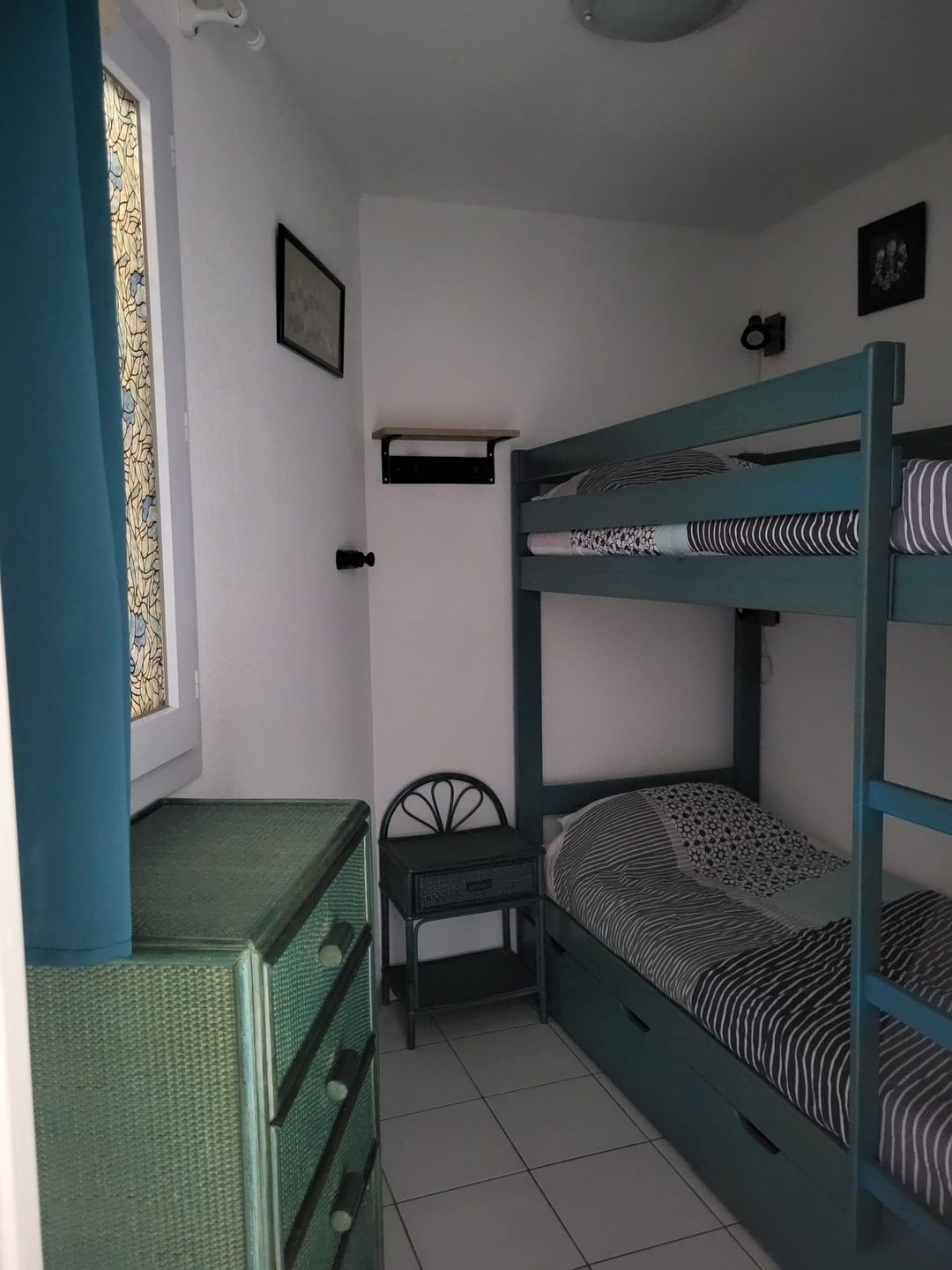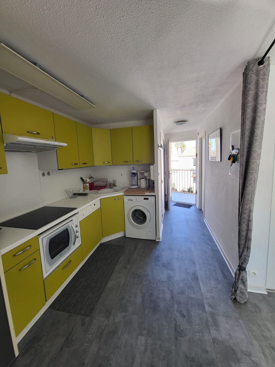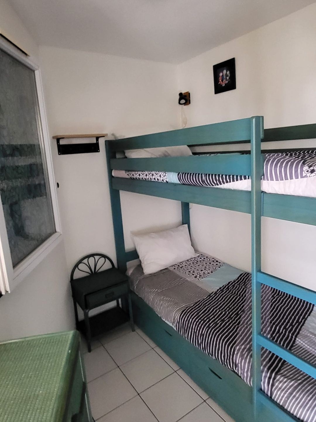 Découvrez ce superbe appartement T2 cabine de 29 m² au Cap d’Agde, idéalement situé dans une résidence calme et sécurisée, avec une grande terrasse/loggia de 9m² offrant une vue agréable sur les jardins et la piscine. Vous profiterez d’un environnement paisible dans une résidence dotée de magnifiques espaces verts, à seulement 600 m de la plage Richelieu et à 50 m des commerces et animations de l’Ile des Loisirs. Situé au 3e étage avec ascenseur, cet appartement dispose également d’un garage privé dans la résidence, avec des dimensions de L 6.80m x l 2.35m x h 2.10m et une hauteur de porte de 1.78m. L’appartement comprend un hall d’entrée avec couloir, une chambre cabine équipée de lits superposés, des WC indépendants, une salle d’eau moderne, ainsi qu’un séjour spacieux avec un canapé convertible. Le coin cuisine est entièrement équipé, et la chambre double dispose de rangements et d’une télévision. La terrasse/loggia, équipée d’une table et de chaises, vous permettra de profiter du plein air tout en admirant la vue. Côté confort, l’appartement comprend un lit double en 140, deux lits superposés en 80 et un canapé convertible BZ en 160. Il peut accueillir de 5 à 6 personnes, avec une capacité maximale de 4 adultes et des enfants. L’emplacement de cet appartement est idéal, avec les plages de l’Ile des Loisirs à seulement 600 m, le port de plaisance à 800 m, et les commerces à 50 m. Cet appartement T2 cabine est parfait pour un séjour en famille ou entre amis, offrant à la fois confort moderne et proximité des attractions locales, dans un cadre agréable et pratique. Référence de l’agence : RM132