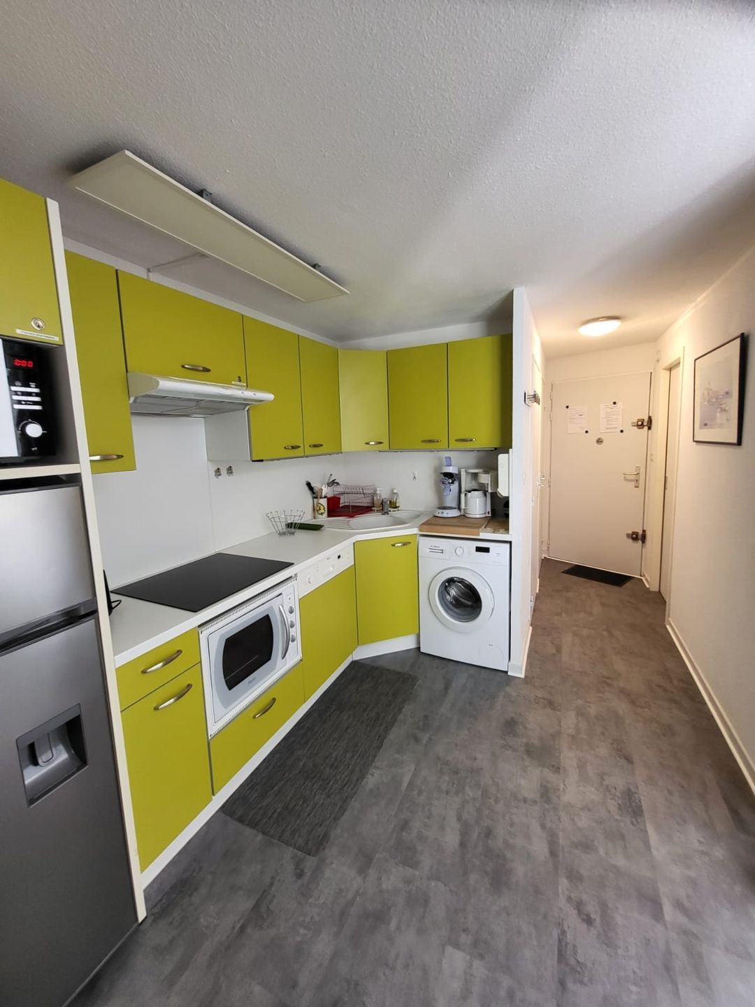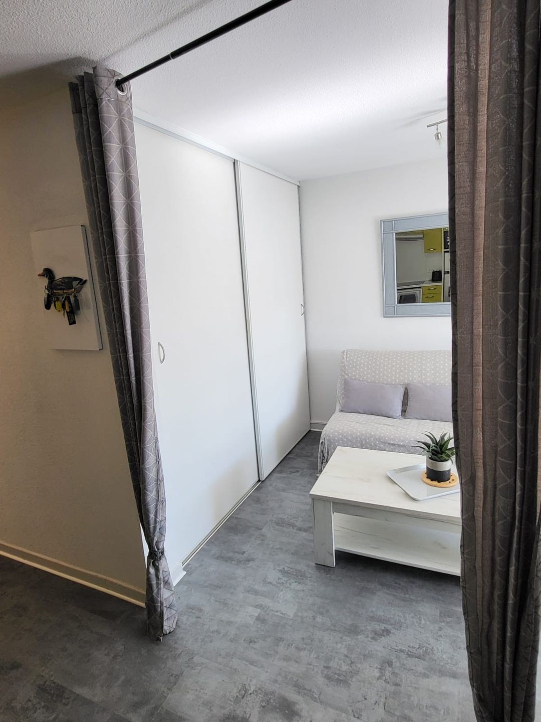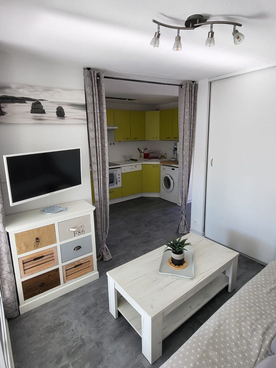 Découvrez ce superbe appartement T2 cabine de 29 m² au Cap d’Agde, idéalement situé dans une résidence calme et sécurisée, avec une grande terrasse/loggia de 9m² offrant une vue agréable sur les jardins et la piscine. Vous profiterez d’un environnement paisible dans une résidence dotée de magnifiques espaces verts, à seulement 600 m de la plage Richelieu et à 50 m des commerces et animations de l’Ile des Loisirs. Situé au 3e étage avec ascenseur, cet appartement dispose également d’un garage privé dans la résidence, avec des dimensions de L 6.80m x l 2.35m x h 2.10m et une hauteur de porte de 1.78m. L’appartement comprend un hall d’entrée avec couloir, une chambre cabine équipée de lits superposés, des WC indépendants, une salle d’eau moderne, ainsi qu’un séjour spacieux avec un canapé convertible. Le coin cuisine est entièrement équipé, et la chambre double dispose de rangements et d’une télévision. La terrasse/loggia, équipée d’une table et de chaises, vous permettra de profiter du plein air tout en admirant la vue. Côté confort, l’appartement comprend un lit double en 140, deux lits superposés en 80 et un canapé convertible BZ en 160. Il peut accueillir de 5 à 6 personnes, avec une capacité maximale de 4 adultes et des enfants. L’emplacement de cet appartement est idéal, avec les plages de l’Ile des Loisirs à seulement 600 m, le port de plaisance à 800 m, et les commerces à 50 m. Cet appartement T2 cabine est parfait pour un séjour en famille ou entre amis, offrant à la fois confort moderne et proximité des attractions locales, dans un cadre agréable et pratique. Référence de l’agence : RM132