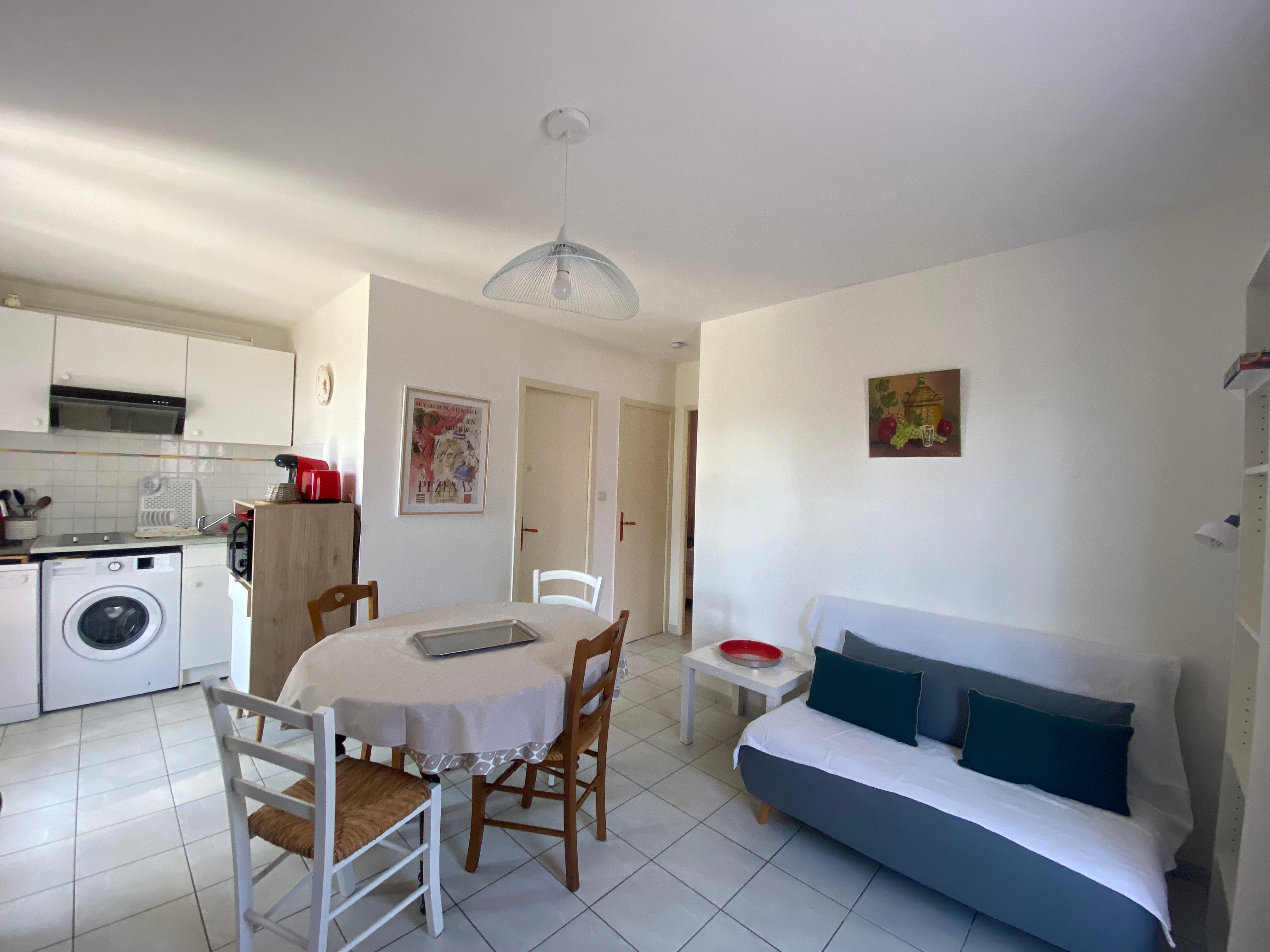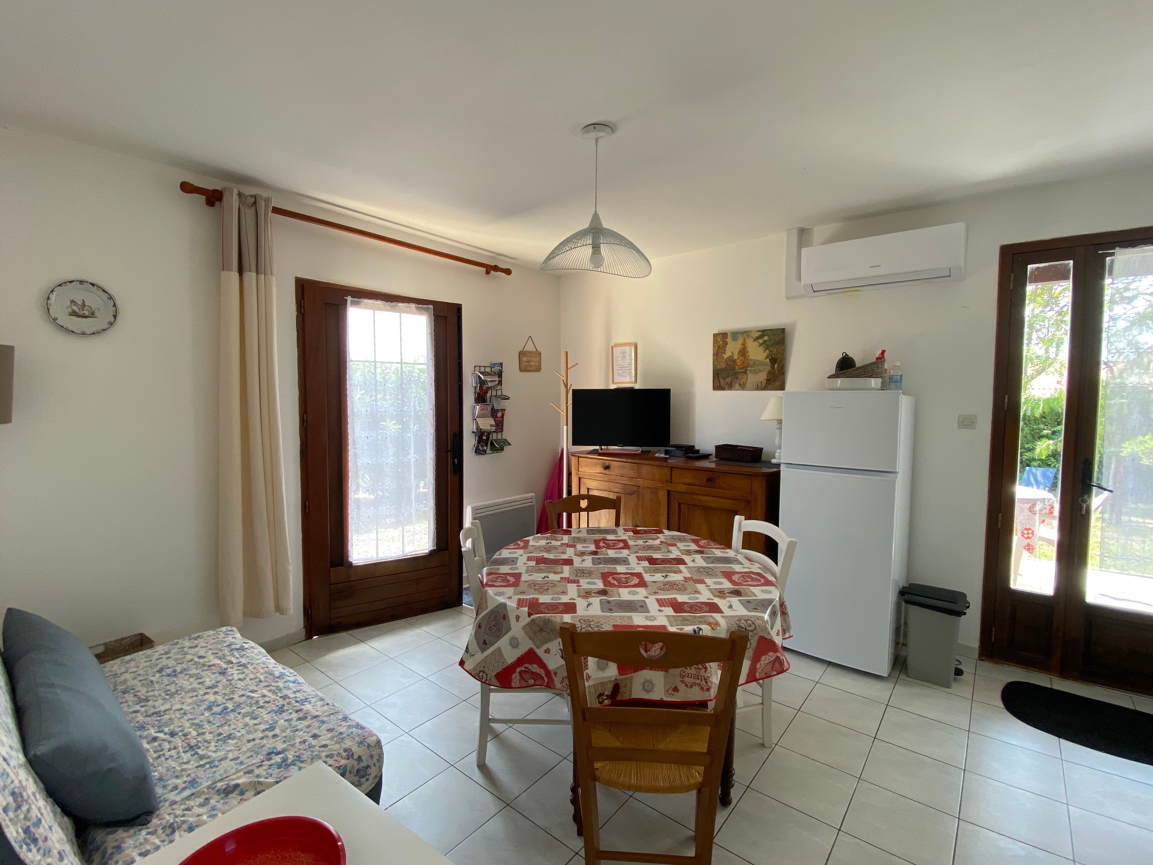 🏡 Gîte 2 Étoiles à Pailhès (Hérault) – Climatisé & Tout Confort Vous recherchez un gîte confortable en Hérault pour des vacances en famille ou entre amis ? Ce pavillon climatisé indépendant de 40 m² de plain-pied vous accueille à Pailhès, un charmant village proche de Béziers, Pézenas et des plages méditerranéennes. Ce logement peut accueillir jusqu’à 4 personnes et offre tout le confort nécessaire pour un séjour agréable. La pièce à vivre lumineuse comprend un canapé, une télévision avec box WiFi, une table à manger, un buffet et des jeux de société. La cuisine entièrement équipée dispose d’un lave-vaisselle, d’un four multifonctions, d’une bouilloire, d’un grille-pain, d’une cafetière ainsi que de tous les ustensiles et la vaisselle nécessaires. Le gîte comprend deux chambres : une avec un lit double et une autre avec deux lits simples. La salle d’eau est équipée d’un sèche-cheveux, d’un chauffage et de WC séparés. Pour plus de praticité, un lave-linge, un aspirateur ainsi qu’une table et un fer à repasser sont à disposition. À l’extérieur, une terrasse couverte permet de profiter pleinement du cadre paisible. Un salon de jardin, des transats, un parasol et un barbecue sont disponibles pour des moments de détente. Un parking privé est également mis à disposition. ℹ️ À noter : La propriétaire possède 3 gîtes sur place, pouvant accueillir jusqu’à 12 personnes au total, idéal pour des séjours en groupe ou des réunions de famille.