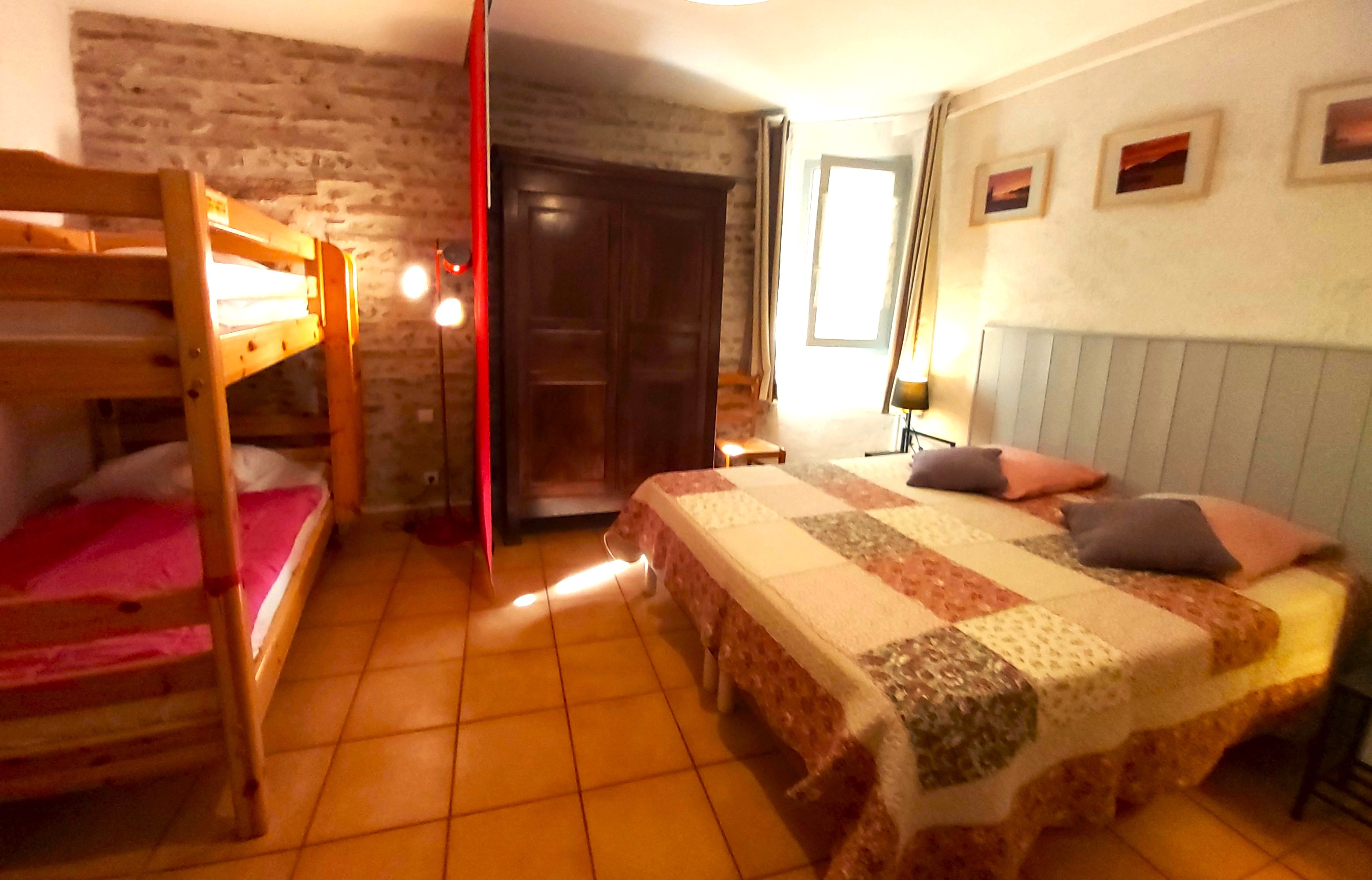 MIMI CHOU appartement situé au 1er étage dans le centre historique. Composé de 2 pièces 47m² très bien équipé, 100m plage, près de toute Climatisation, Wifi, L-linge, L-Vaisselle, TV, etc… Chambre calme à l’arrière de la maison avec fenêtre sur cour, 1 lit de 160 x 200 et 1 lit superposé, séparés par une cloison japonaise, salle d’eau avec douche, meuble vasque avec rangement, sèche-cheveux, miroir, tapis de bain… Enfants bienvenus Parking payant. Location du Samedi au Samedi. Durée minimum du séjour : Une semaine.