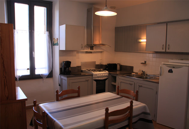 Appartement au 1er étage d’une maison mitoyenne. Terrasse – 2 chambres – 2 lits doubles – cuisine – salon – salle d’eau – WC – chauffage électrique. Charges comprises. Taxe de séjour en supplément. Forfait Cure (3 sem.) = 650 €.