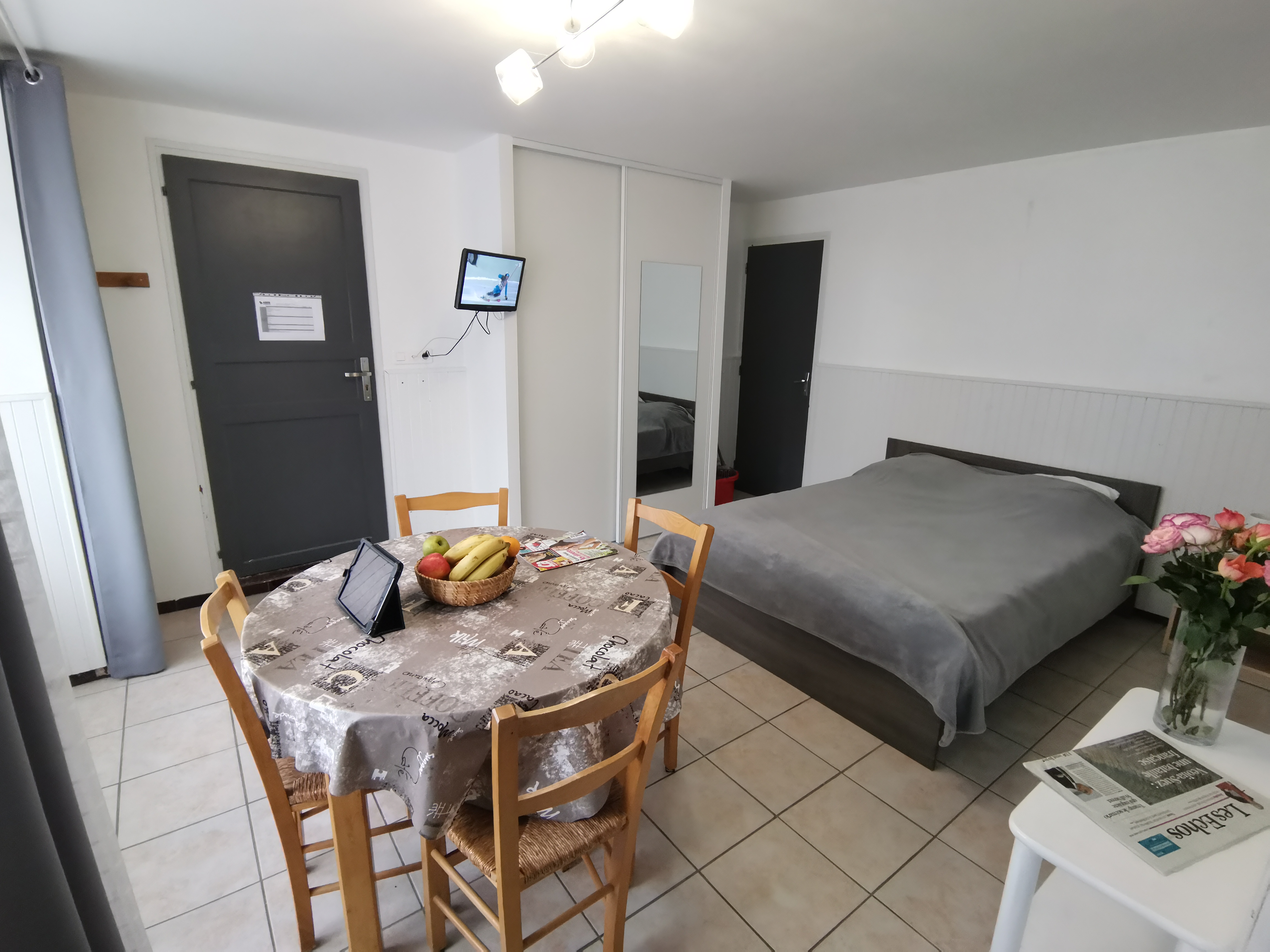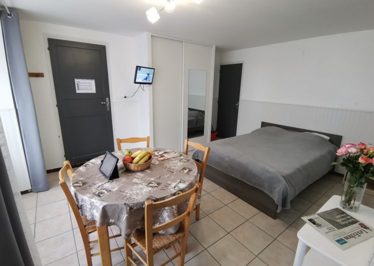 Studio meublé ensoleillé situé au rdc d’un immeuble entièrement rénové, dédié à l’accueil de curistes. 1 lit double (couette fournie, prévoir draps et housse), fenêtre PVC neuve avec double vitrage et volets électriques. Chauffage électrique moderne, cuisine équipée, téléviseur, WIFI gratuit. Machine à laver en accès libre dans un espace commun. Situé à 280 m. de la cure, stationnement aisé. Possibilité de location de draps et de linge de toilette.