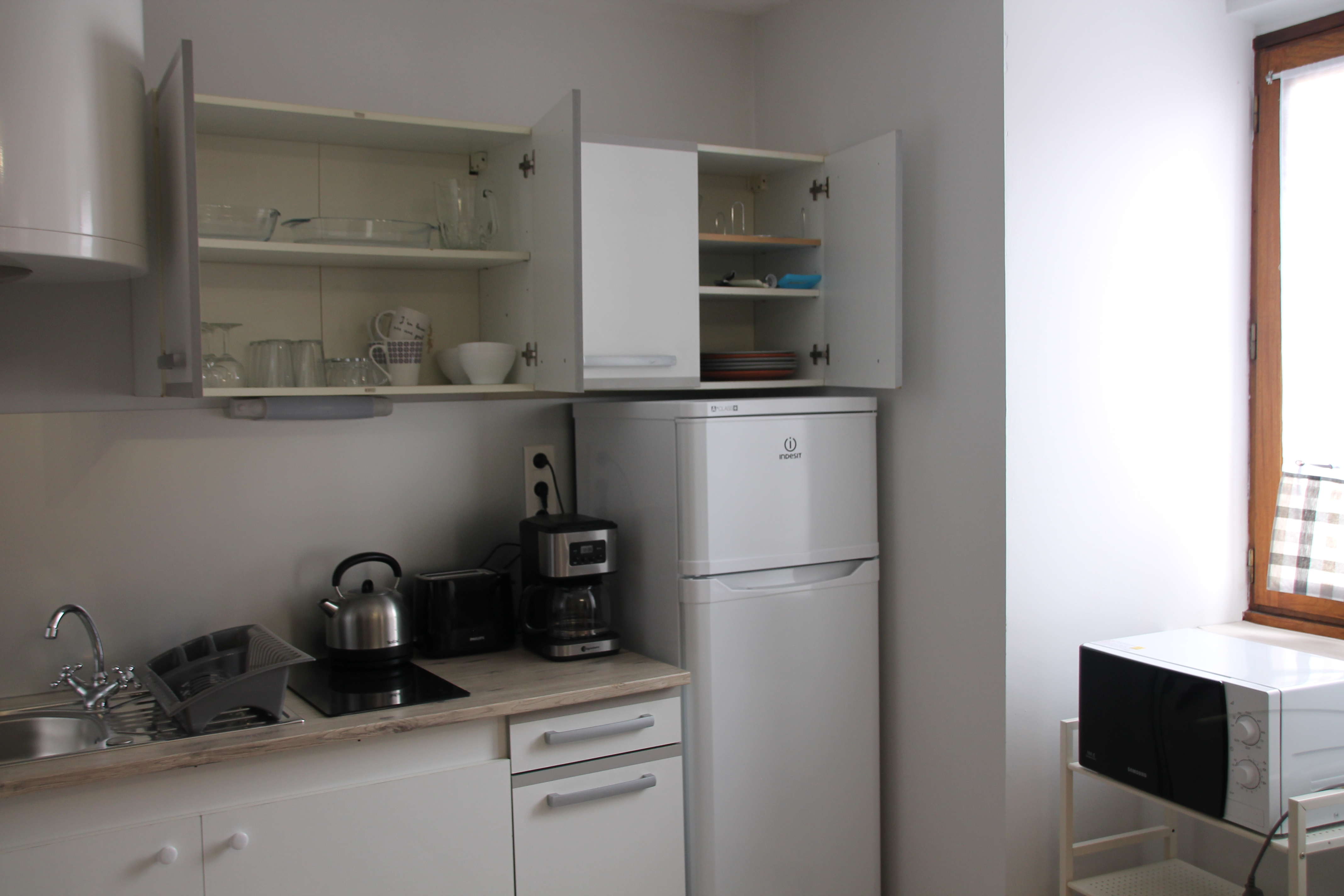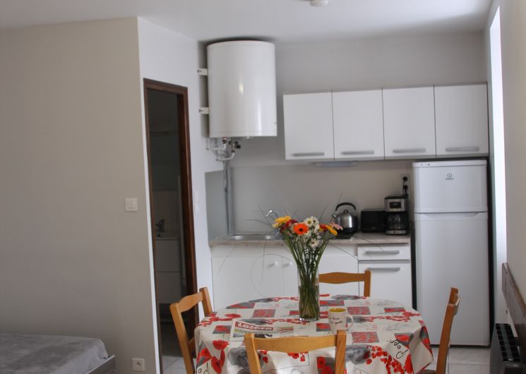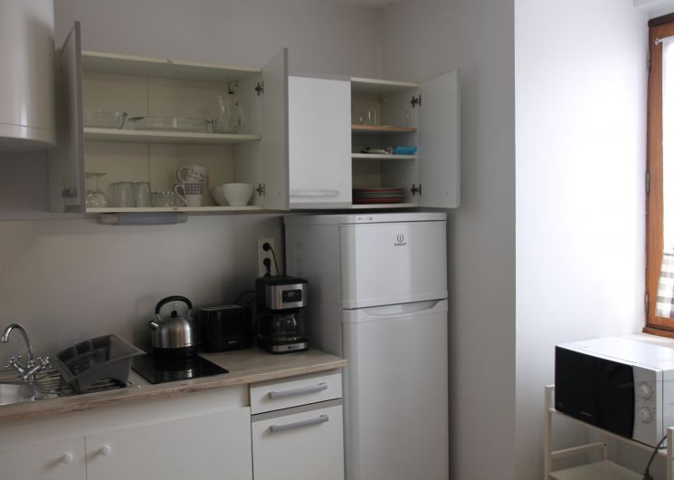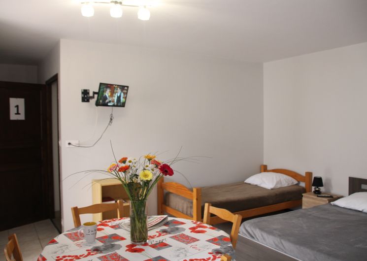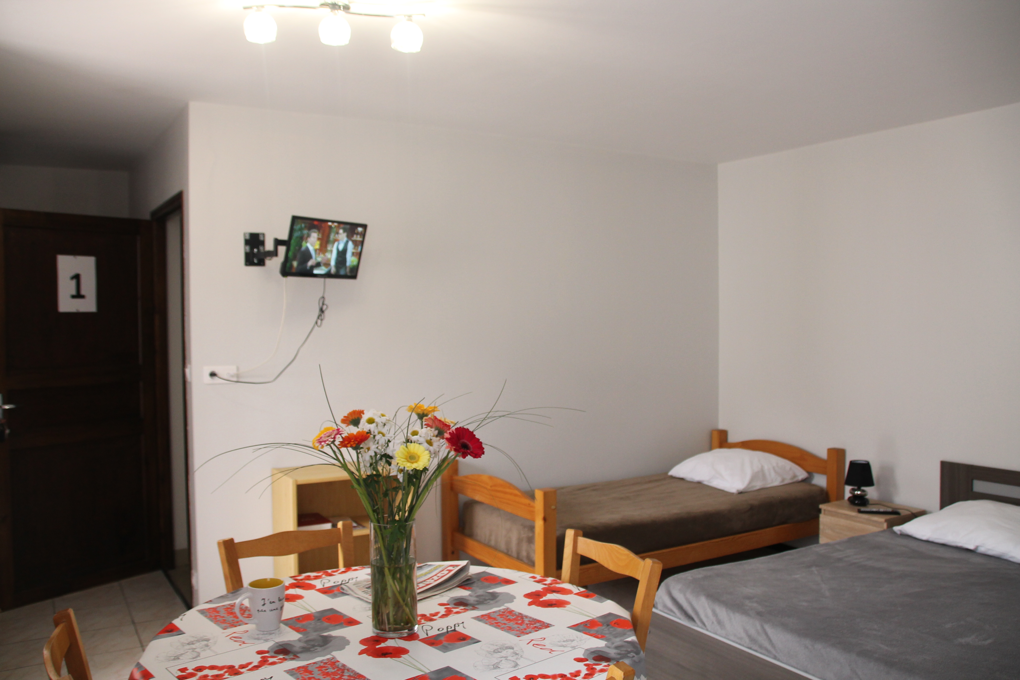 Studio meublé ensoleillé situé au 1er étage d’un immeuble entièrement rénové, dédié à l’accueil de curistes. 1 lit double + 1 canapé convertible (couettes fournies, prévoir draps et housses), fenêtre PVC neuve avec double vitrage et volets électriques. Chauffage électrique moderne, cuisine équipée, téléviseur, WIFI gratuit. Machine à laver en accès libre dans un espace commun. Situé à 280 m. de la cure, stationnement aisé.