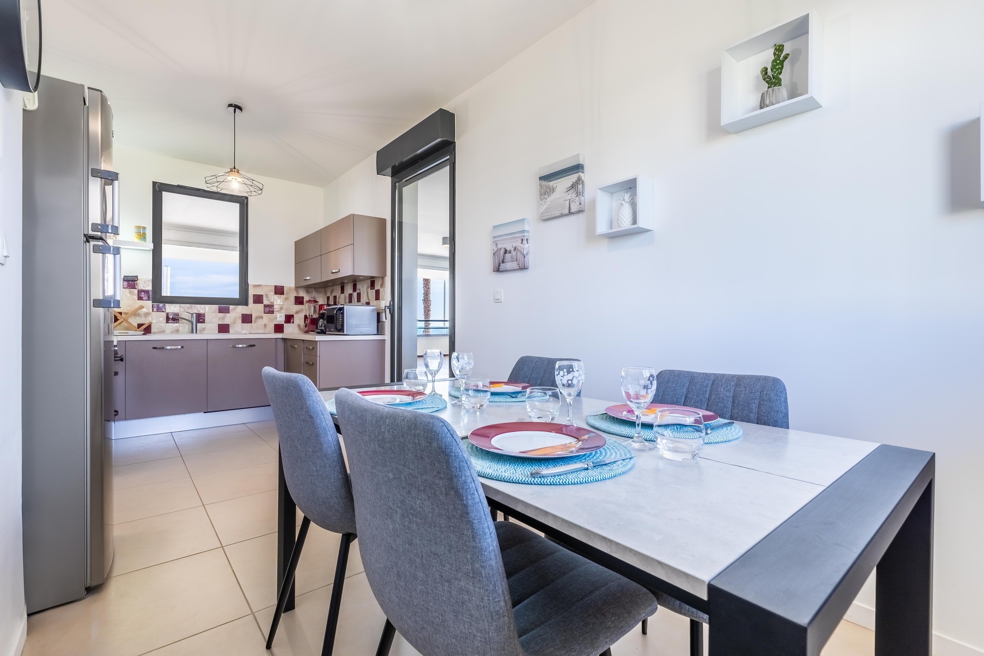 Vue mer panoramique, accès direct à la plage, grande terrasse de 100 m², climatisation, WiFi et parking sécurisé Situé dans la résidence Murano, ce splendide appartement 3 pièces de standing accueille confortablement jusqu’à 4 personnes. Il se trouve au premier étage avec ascenseur et bénéficie d’un emplacement exceptionnel face à la mer, avec un accès direct à la plage, sans route à traverser. Le séjour, particulièrement lumineux, s’ouvre sur une vaste terrasse de 100 m² offrant une vue imprenable sur la plage et la Méditerranée. La cuisine, indépendante et entièrement équipée, dispose de tout le nécessaire pour un séjour agréable : four, plaques de cuisson, micro-ondes, lave-vaisselle, réfrigérateur, cafetière, etc. L’appartement comprend deux chambres, chacune équipée de deux lits simples en 90 cm. La salle de bain est moderne et fonctionnelle, et les toilettes sont séparées. Pour votre confort, l’appartement est climatisé, dispose d’une connexion WiFi gratuite et d’une place de parking dans la résidence sécurisée. L’emplacement est idéal pour des vacances reposantes, tout en étant proche des commerces et des animations. Des services optionnels sont proposés sur place : la location de draps en tissu jetable à partir de 15 € par lit (comprenant le drap housse, le drap plat et les taies d’oreillers), un forfait ménage final à partir de 100 €, et la taxe de séjour calculée à l’arrivée selon le tarif en vigueur. Cet appartement combine emplacement exceptionnel, prestations haut de gamme et confort absolu pour des vacances en bord de mer inoubliables. Pour toute réservation, merci de nous contacter par téléphone au 04 67 51 24 43 ou par e-mail à l’adresse info@boiximmo.com.