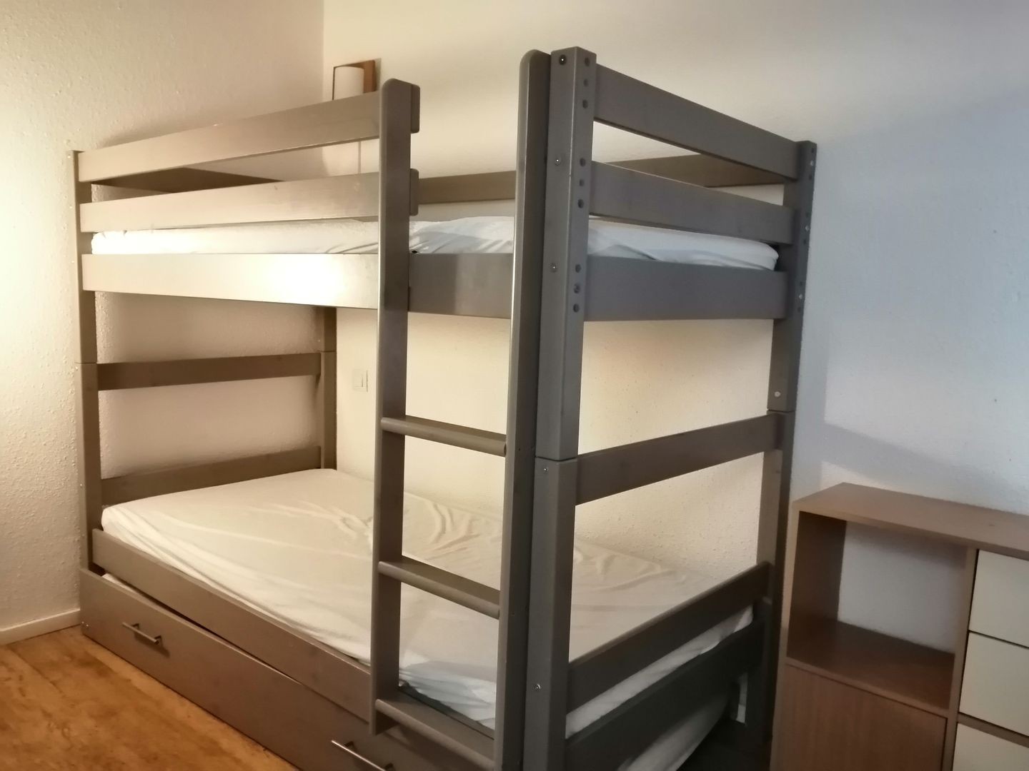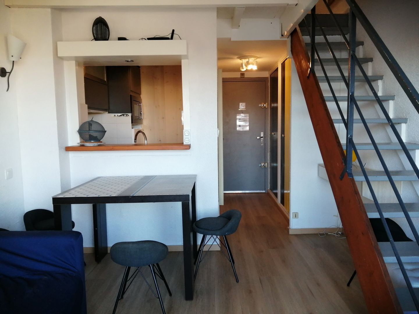 RÉF : REPORT408 Très beau T3 duplex/mezzanine très bien rénové. Résidence sécurisée au cœur du Centre Port, avec accès piscine et pataugeoire. Terrasse “tropézienne” sans vis à vis avec vue sur les bateaux. 4e étage avec ascenseur. Parking privé en garage/sous-sol. Composé de : entrée avec placards, wc indépendants, coin cuisine/bar, séjour avec canapé convertible, table et chaises – Mezzanine : 1 chambre avec placards, 1 chambre cabine avec lits superposés et placards, 1 salle de bains, terrasse avec table haute et tabourets. Confort : 1 lit en 160, 2 lits superposés en 90 + 1 lit tiroir en 90, 1 canapé convertible Aménagé pour 5 personnes : 4 adultes maximum + enfants.