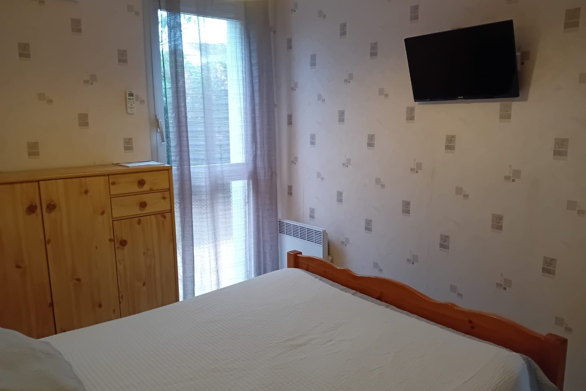 Votre location de vacances Idéalement situé à 400 m du bord de mer, n’attend que vous. Ce joli appartement de 32m2 climatisé F2 pouvant accueillir jusqu’à 4 personnes en RDC offre un jardin indépendant avec terrasse, salon de jardin et barbecue. Il dispose d’une chambre avec lit en 140 cm, d’un coin cabine avec 2 lits en 90 cm, d’un salon/séjour avec canapé convertible, TV, TNT, DVD, Wi-Fi. Un coin cuisine équipé bien équipé avec four, micro-onde, cafetière, lave-linge. Un emplacement de parking privé vous est réservé Possibilité de location de linge (nous consulter) Nous avons 4 appartements en location dans cette résidence. Gîte classé 2* vous bénéficiez d’une taxe de séjour minorée Réservation uniquement par téléphone, Merci.