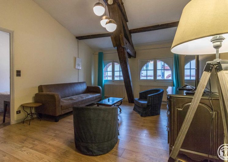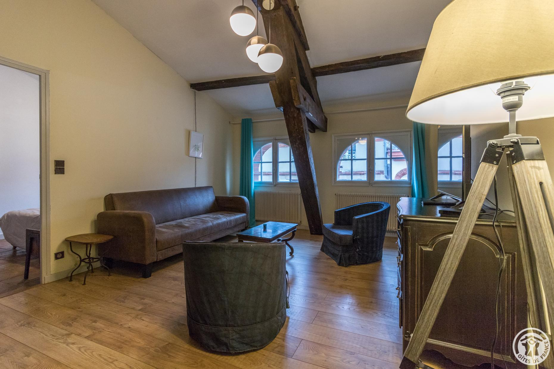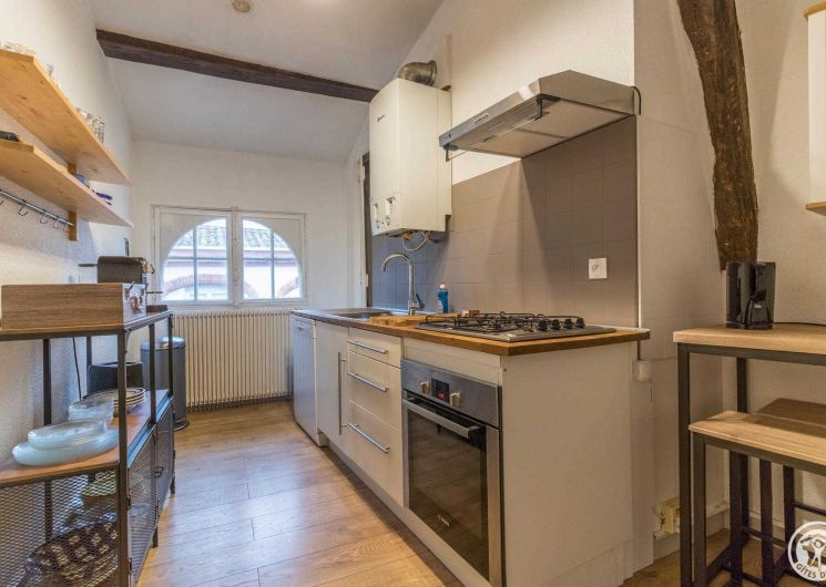 T2 Bis meublé en plein coeur du Toulouse Historique Situé au troisième étage, sans ascenseur, d’un Hôtel particulier du XVII ème siècle, Inscrit à l’inventaire Supplémentaire des Monuments Historiques