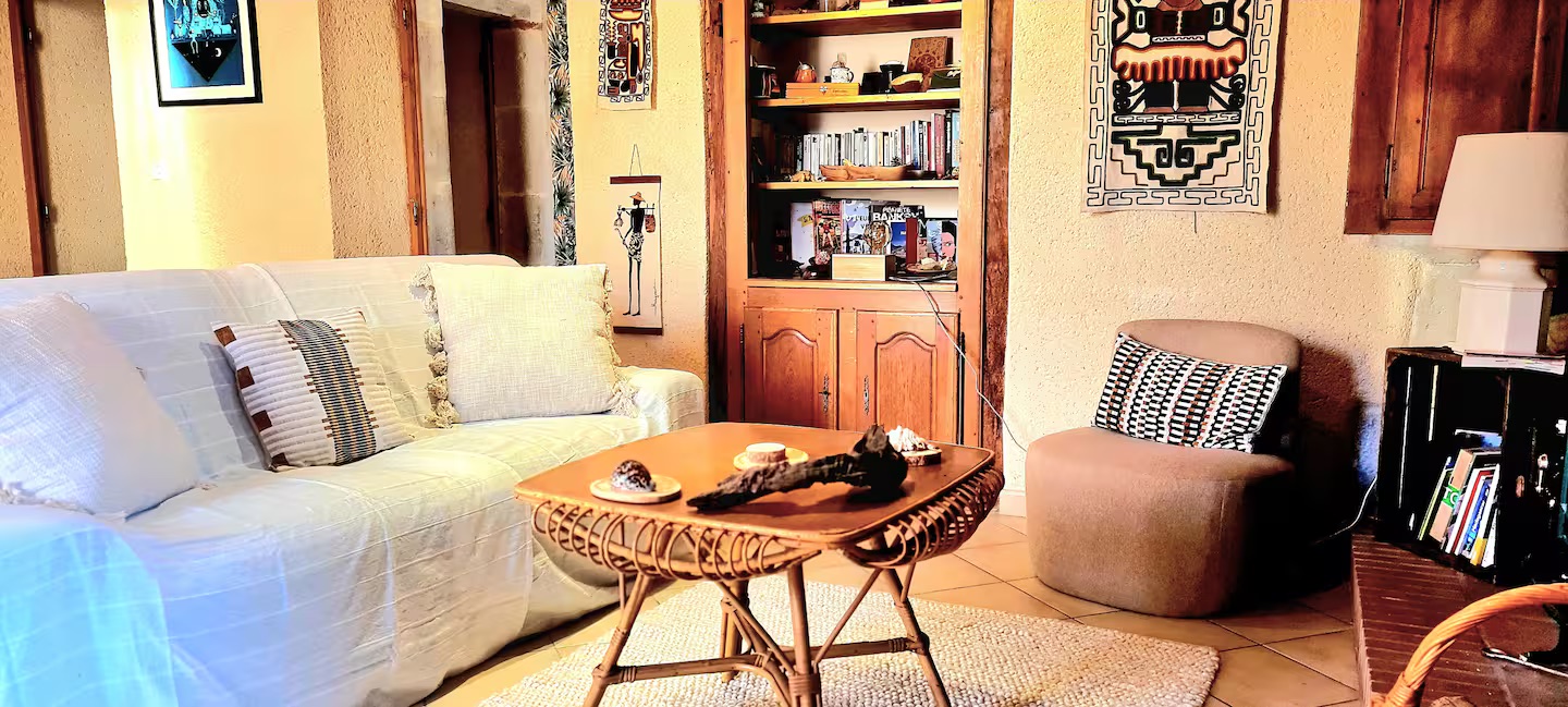 Demeure située à l’étage avec un balcon, une grande salle à manger, une cuisine, 2 chambres, 2 salles de bain + toilettes, ainsi qu’un vaste salon. Vous avez également accès à un jardin privatif et une place de parking. Les pièces sont toutes meublées et toutes équipées car nous y résidons une partie de l’année. Vous serez séduis par notre intérieur qui met en valeur l’ancien par quelques touches modernes et une décoration qui invite au voyage… On ne vous en dit pas plus ! Bienvenus chez nous !