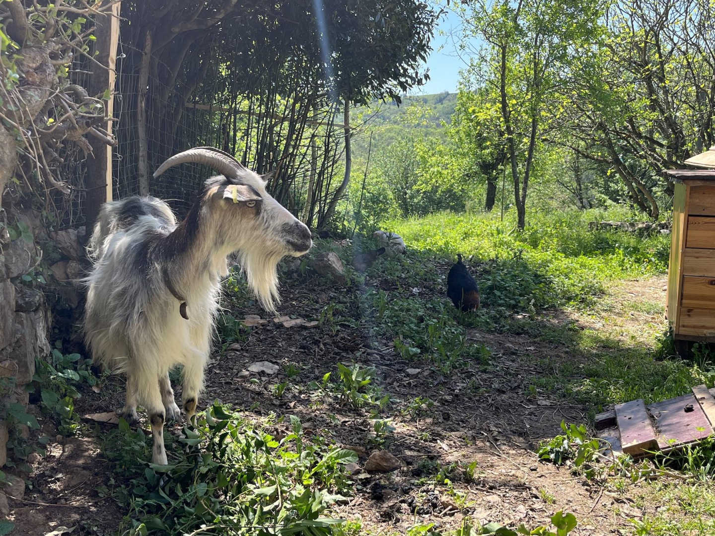 Le gîtel dispose d’une terrasse avec salon de jardin et d’un espace repas dans le jardin à 10 mètres. Notre mini-ferme avec chèvres et poules est à votre disposition pour le plus grand plaisir des enfants (mais aussi des adultes!). Vous avez aussi la possibilité de vous promener dans nos hectares de bois attenants à la propriété souvent en compagnie de nos chèvres qui sont des animaux très sociables et curieux.