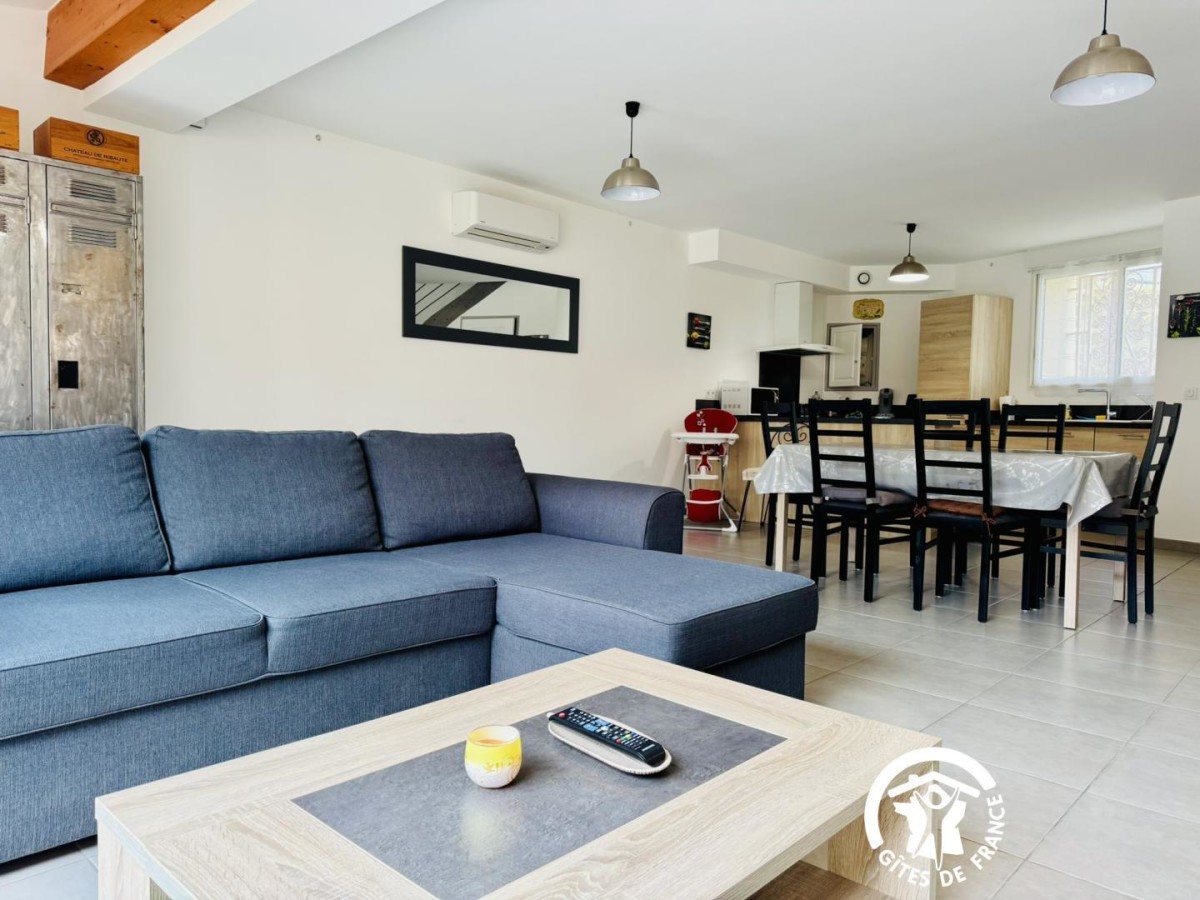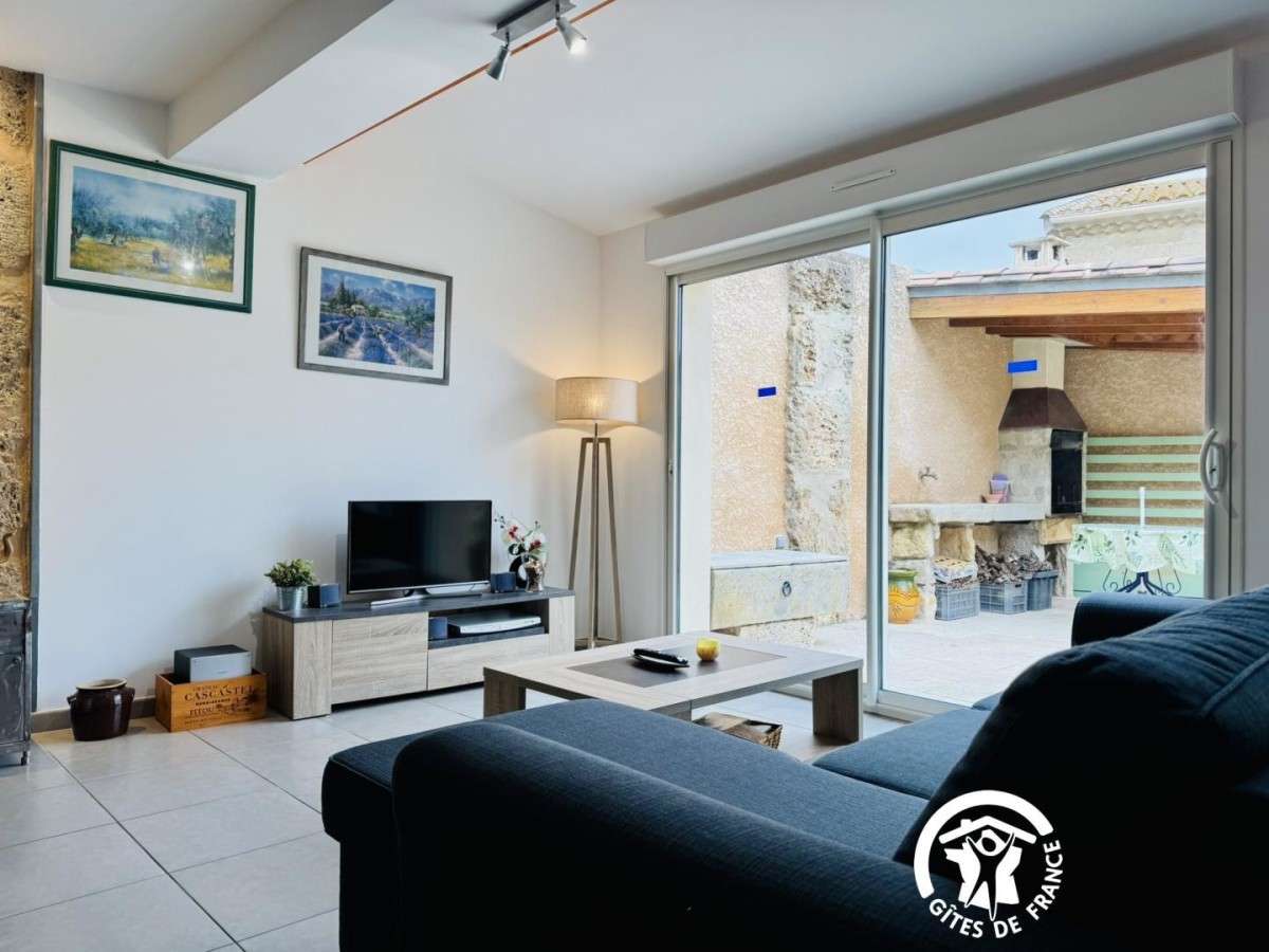 Ce gîte rénové avec goût dans une ancienne cave allie charme industriel et confort moderne. Niché dans un environnement paisible, il offre un espace chaleureux, lumineux, idéal pour se ressourcer en couple, en famille ou entre amis. Les environs sont un véritable paradis pour les amoureux de la nature et les amateurs d’activités de plein air. De nombreux sentiers balisés vous invitent à la randonnée à pied ou en VTT à travers des paysages variés, entre collines, vignes et forêts. Les petites routes sinueuses sont idéales pour les cyclistes en quête de balades tranquilles ou plus sportives. À moins de 5 minutes, vous trouverez tous les commerces et services nécessaires, ainsi que des marchés typiques et des producteurs locaux. Envie d’explorer davantage ? De charmants villages, des sites patrimoniaux et des caves viticoles vous attendent à proximité. Le gîte s’ouvre sur une cour-terrasse privative, clôturée, équipée d’un abri, d’un barbecue et de mobilier de jardin. A l’intérieur : _Un grand séjour avec cuisine ouverte, A l’étage : _Deux chambres proposant chacune un lit en 140, _ Une salle d’eau avec grande douche italienne et meuble vasque, _Un W.C. indépendant, Pour le stationnement, il est possible de garer un véhicule dans la cour, sinon le parking communal se trouve un peu plus loin.