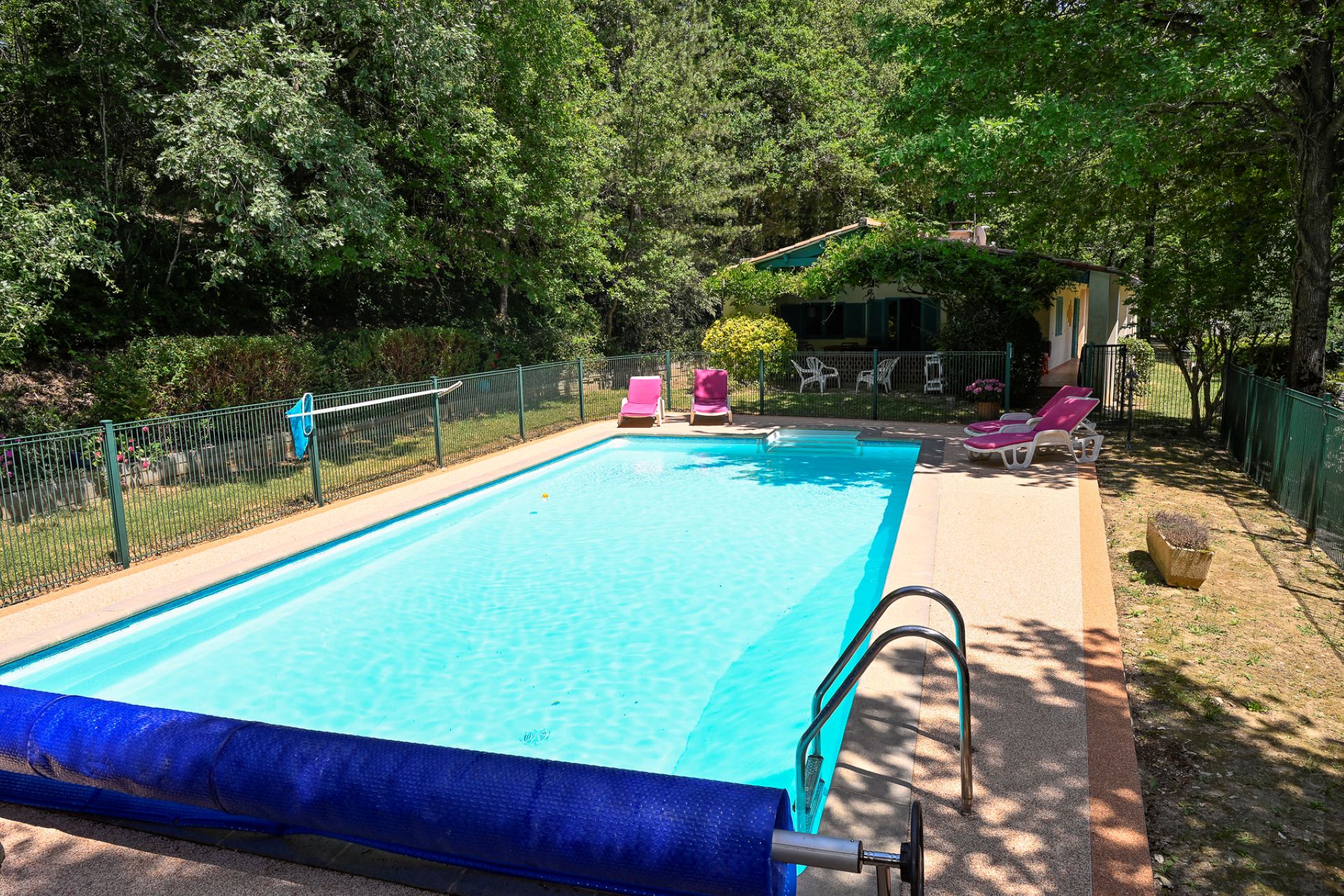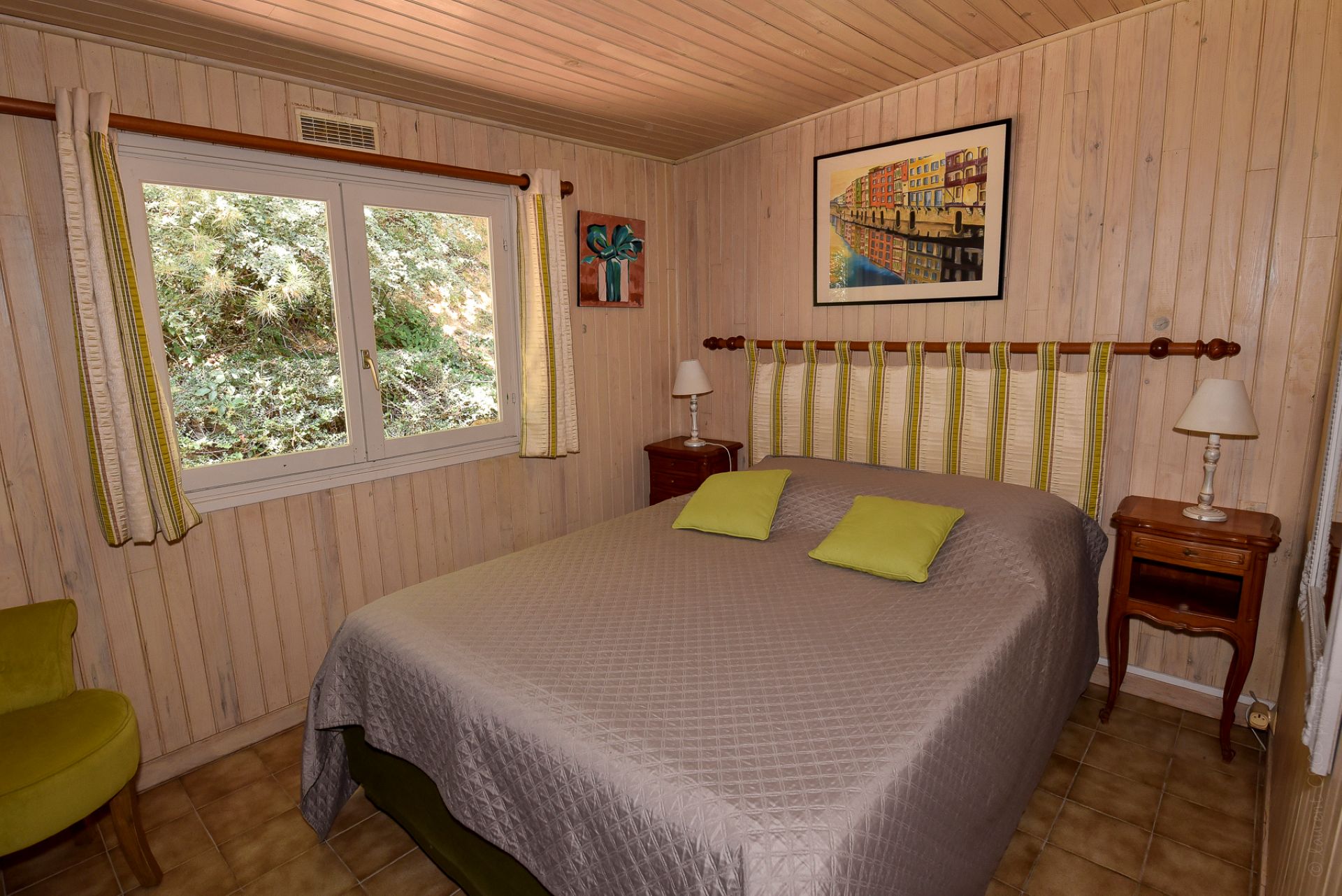Chalet avec piscine privée sur un terrain arboré dans le Parc Régional du Haut Languedoc. 1 chambre.