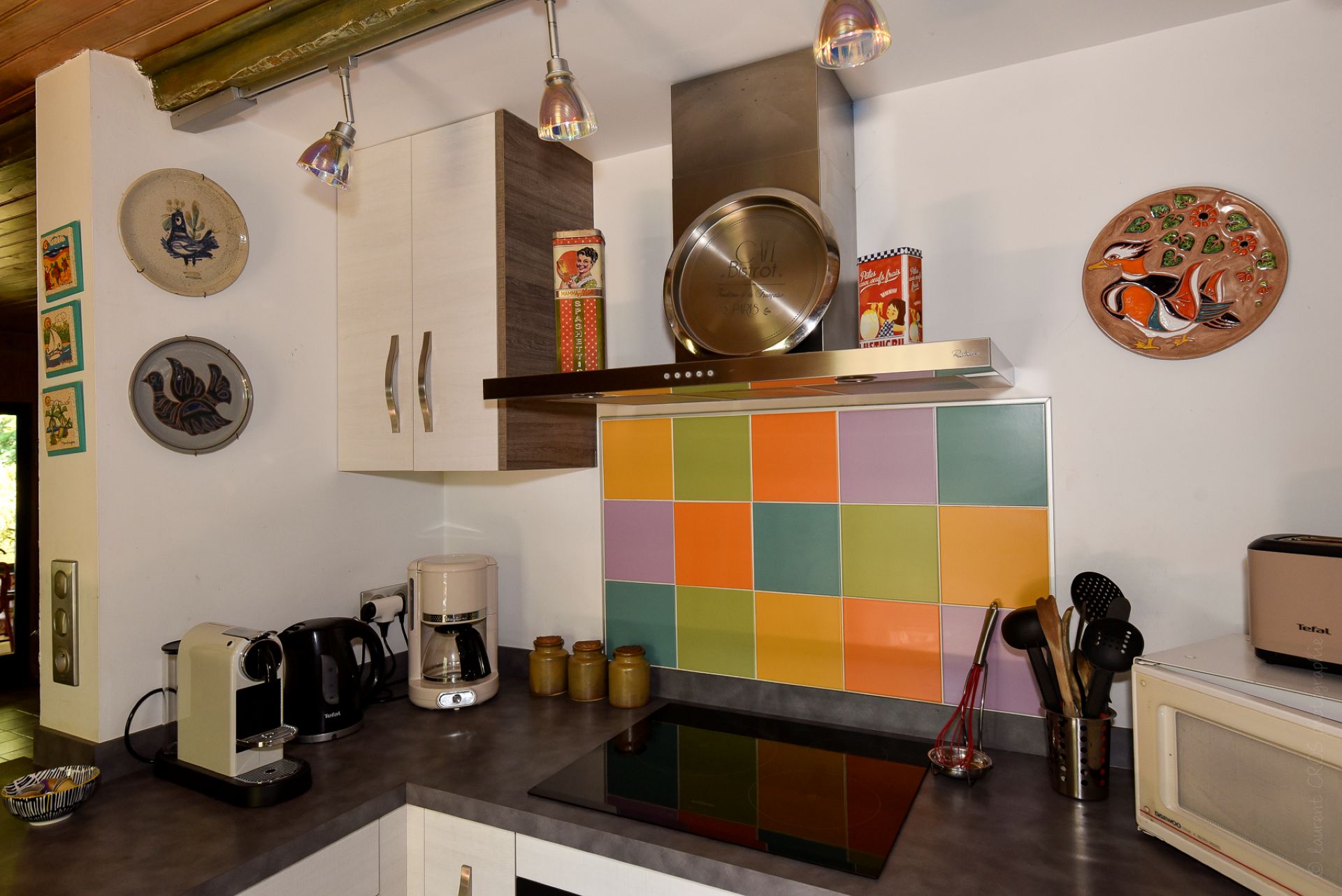De plain pied, ce chalet comprend : espace vie 40 m2 avec kitchenette/séjour (four et plaque à induction, lave- vaisselle, micro-ondes, congélateur) et coin salon TV couleur, lecteur DVD; canapé convertible en 140), cheminée, salle d’eau avec WC. 1 chambre (7 m2) 1 lit en 140. Jeux de société. Chauffage : cheminée avec insert + convecteur. Location de draps, linge de maison et de toilette.