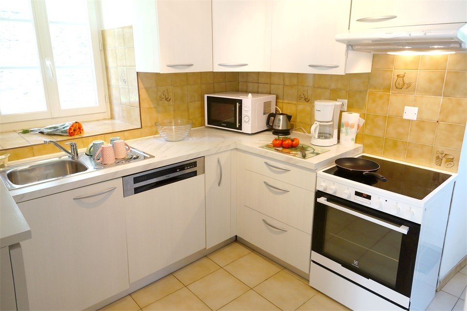 Télévision, four, micro-ondes, réfrigérateur-congélateur, lave vaisselle, lave linge.