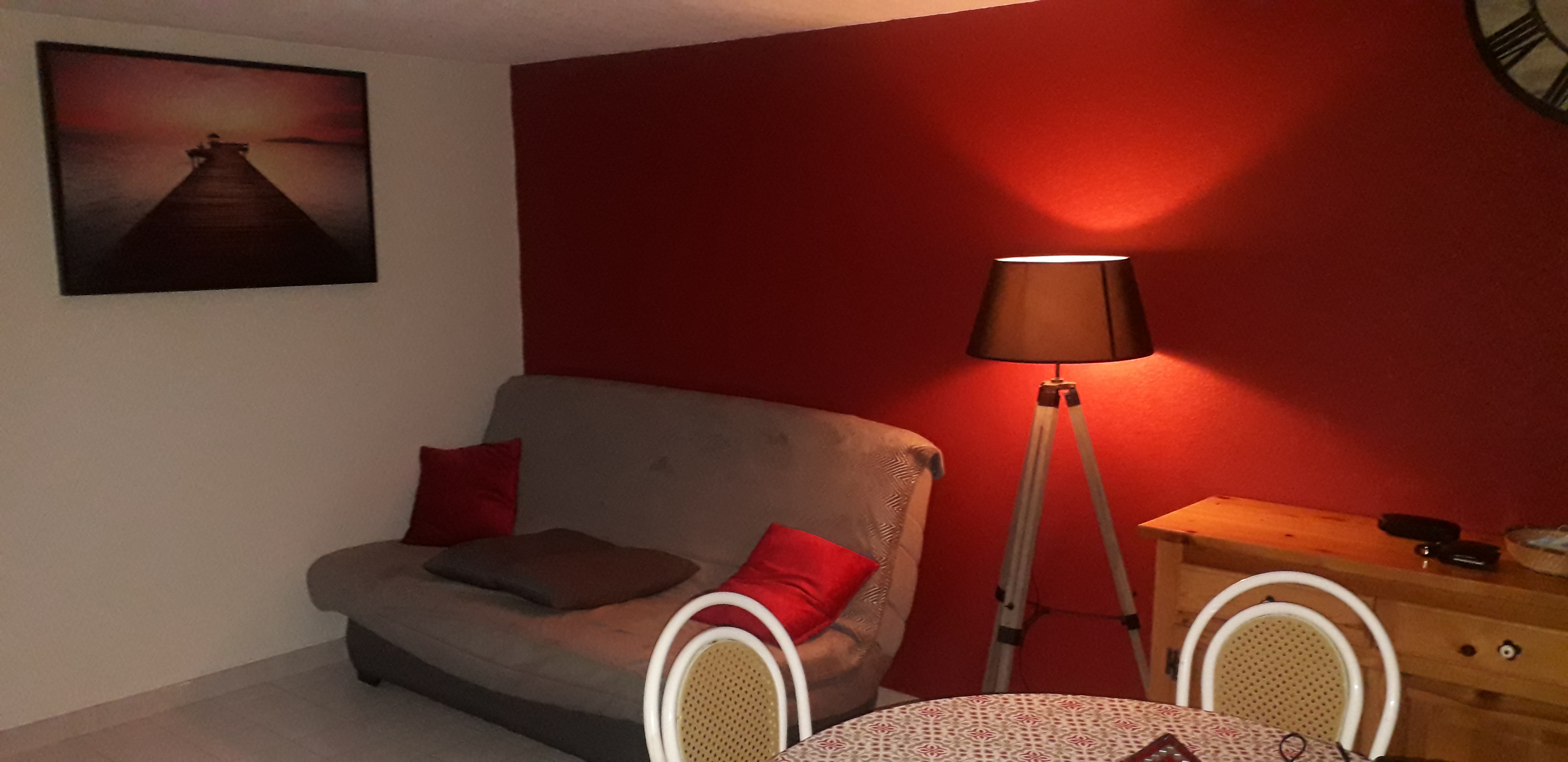Cuisine équipée, salon avec 1 clic-clac, télévision, WC indépendant