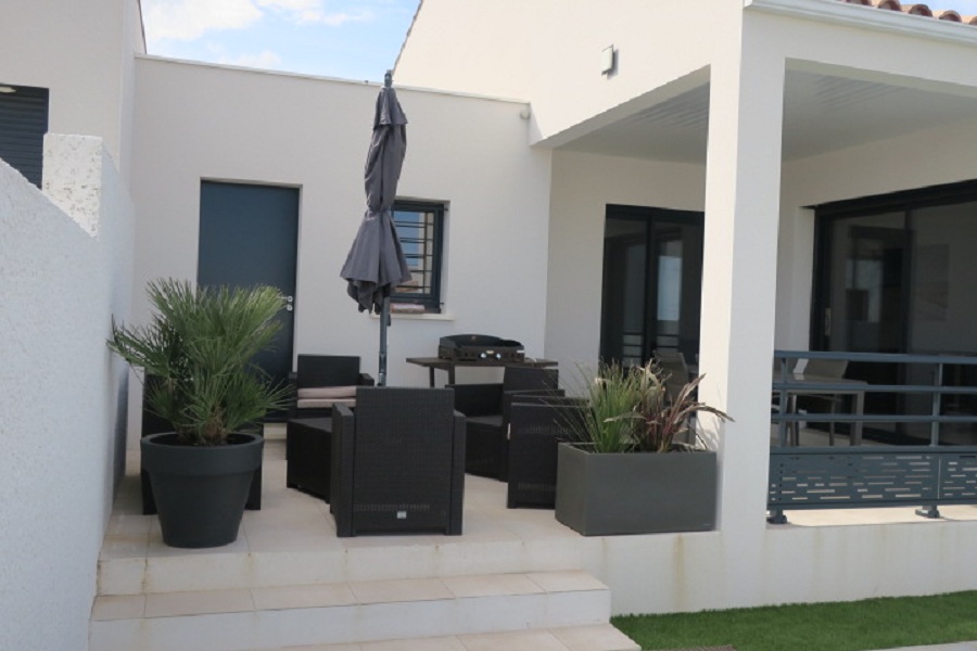 Maison individuelle neuve pour 8 personnes, entièrement climatisée, située à 900 mètres de la plage de Valras avec accès piétonnier en 10 mn. Secteur pavillonnaire calme sur la commune de Sérignan limitrophe de Valras.