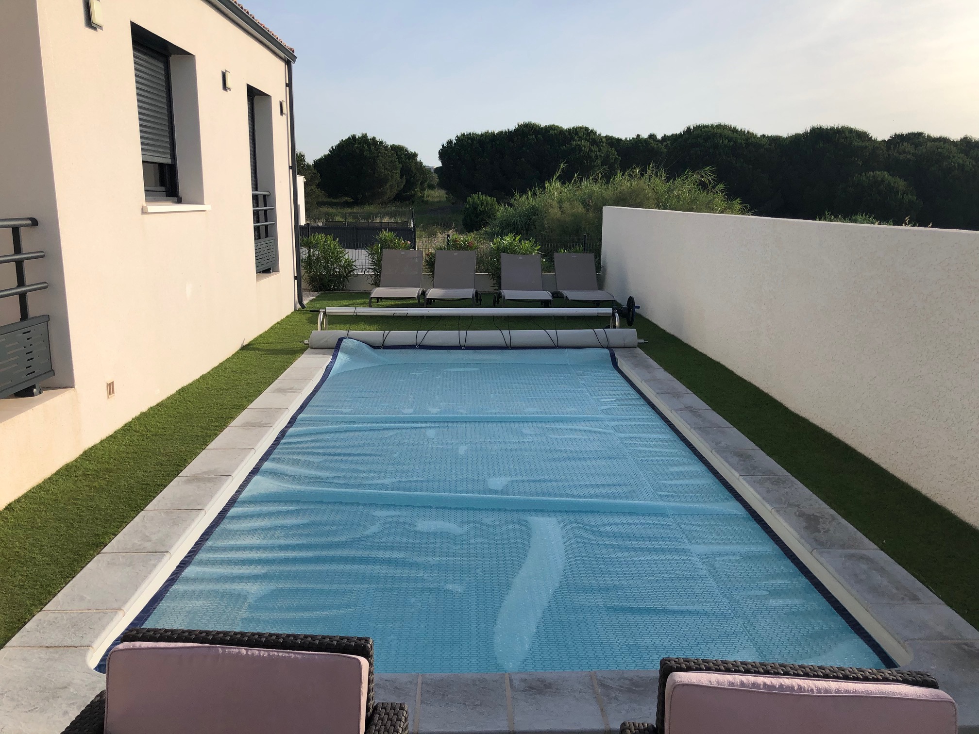 Maison individuelle neuve entièrement climatisée pour 8 personnes, avec cuisine équipée et piscine privative sécurisée. Extérieurs clos. Trois chambres et deux salles de bains dont une avec baignoire et l’autre avec douche à l’italienne. Nombreux rangements. Deux places de parking devant le garage. Maison située à 900 mètres de la plage principale de Valras avec accès piétonnier en 10 min. Secteur pavillonnaire calme situé sur la commune de Sérignan limitrophe de Valras.