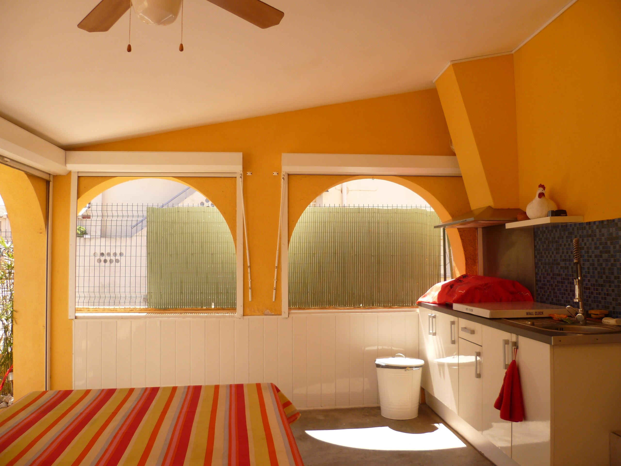 Maison de plain-pied pour 4 à 5 personnes, climatisée et tout confort. Deux chambres avec télévision, cuisine entièrement équipée, salon avec clic-clac. Salle d’eau moderne, patio avec plancha et petite terrasse.
