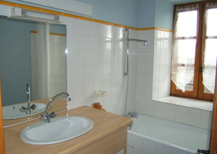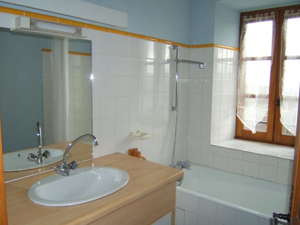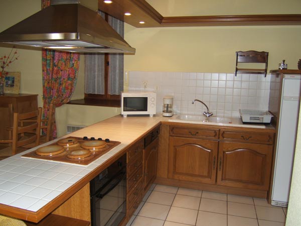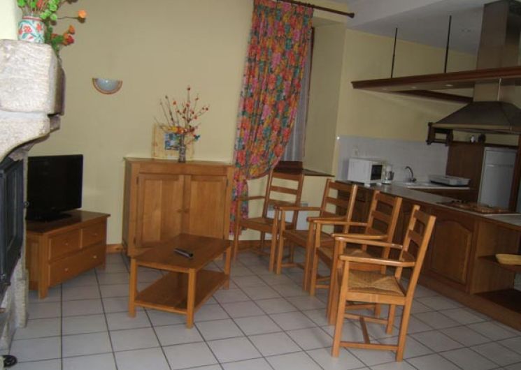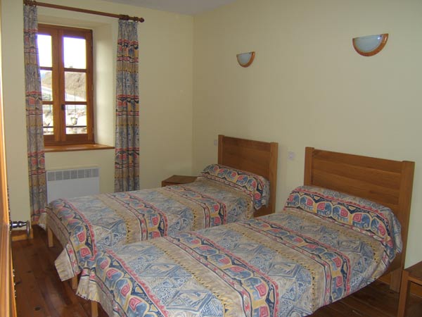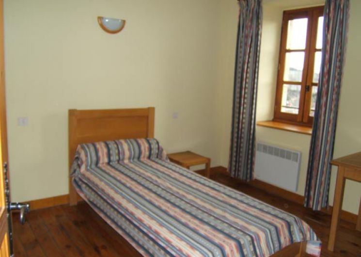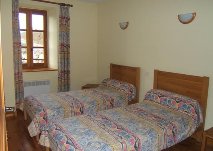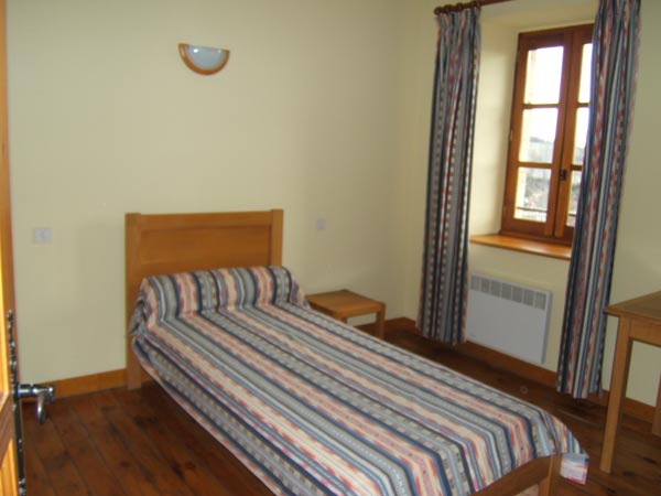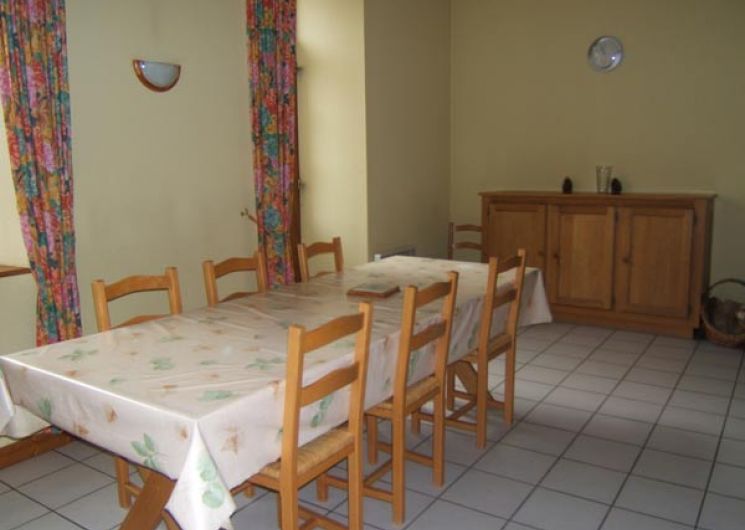 Ancienne école restaurée. Au rez de chaussée : séjour (cheminée, TV), coin cuisine (réfrigérateur avec freezer, plaques électriques, four, lave vaisselle), WC. A l’étage : 1 chambre (1 lit 2 places), 1 chambre (2 lits 1 place), 1 chambre (1 lit 1 place), salle d’eau et salle de bains, WC. Salon de jardin, barbecue, cour fermée, lave linge.