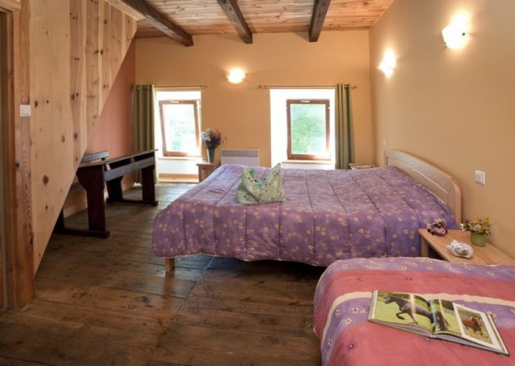 Ancienne école rénovée dans un hameau comprenant : Rez de Chaussée : séjour/salon (télévision, poêle à granules), coin cuisine intégrée (lave vaisselle, congélateur). Lave linge et Sèche linge. WC. 1er étage : 1 chambre (1 lit 160 et 1 lit 90), 1 chambre (1 lit 120). Salle d’eau. 2ème étage (mezzanine) : 1 lit 160 et 1 lit 90. Jardin privatif (bains de soleil) avec salon de jardin et barbecue. Granulés pour poêle sur place (5€ le sac de 15 kg). Possibilité location vacances scolaires pour 2 semaines consécutives (Toussaint, Noël et vacances d’hiver).