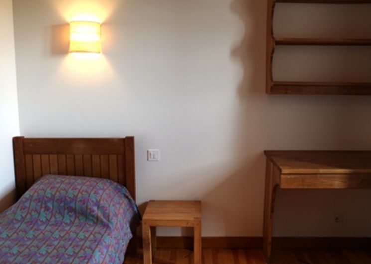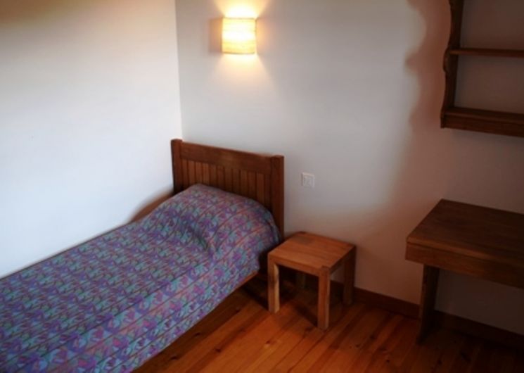 Ancienne école totalement indépendante. Rez-de-chaussée : séjour (1 banquette lit 1 place), télévision, coin cuisine équipé, micro-ondes, WC. A l’étage : 2 chambres (1 lit 2 places) dont 1 avec salle d’eau, 1 chambre (1 lit 1 place), salle d’eau, WC. Chauffage électrique, lave-linge, cour fermée.