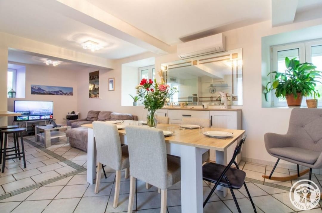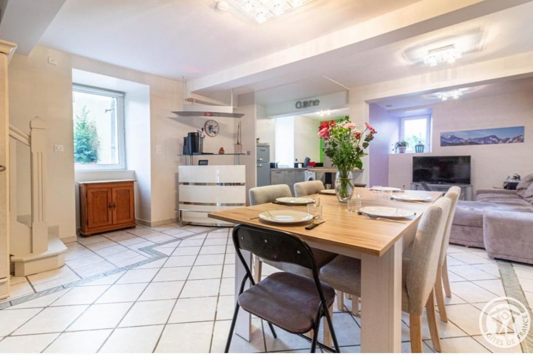 Maison comprenant : Une cuisine ouverte sur séjour, une salle d’eau avec douche à l’italienne et 2 WC, 3 chambres ( lit en 140 ). Un jardin avec salon de jardin et barbecue. La location bénéficie d’un parking privé et d’un local à ski et à vélos. WIFI.
