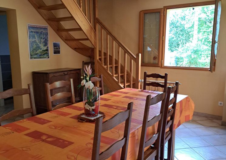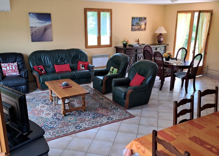 Maison de 150 m², sur 2 niveaux comprenant : Rez-de-chaussée, un séjour, un coin salle à manger et un coin cuisine équipée et 1 WC indépendant et cellier A l’étage, 3 chambres : 1 ch av 2 lits superposés de 90 et 1 lit en 90, 1 ch av 1 lit en 140 et 1 lit en 90 et 1ch ac 1 lit 140 et 1 lit bébé, une salle de bain (douche/baignoire) et un WC indépendant. La location bénéficie d’un garage, parking, terrasse, cour et jardin indépendant. Le + : climatisation réversible au RDC