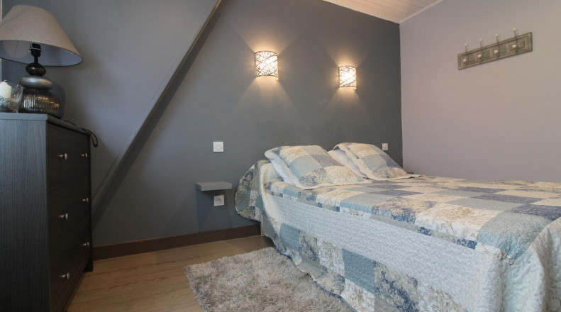 sur 2 niveaux: salle à manger/coin-salon/coin-cuisine, cellier, wc indépendant, chambre (1 lit 140, avec salle d’eau privative), 2 chambres ( 2 lits 140), salle de bain avec wc, salle de jeux. Lit parapluie pour bébé à disposition. Chauffage central eau fuel. Charges comprises. Draps fournis uniquement pour séjour d’une semaine minimum ( linge de toilette non fourni). .