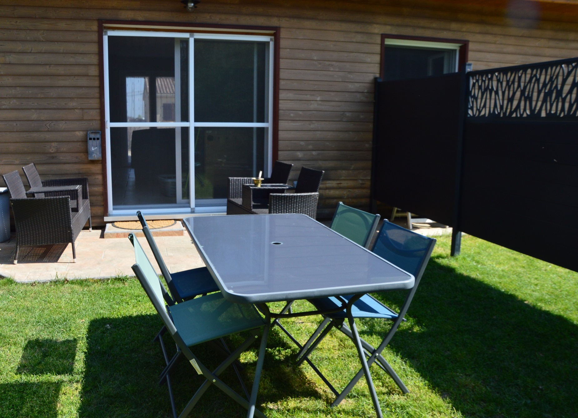 A l’extérieur : terrasse, jardinet, salon de jardin, grill plancha au gaz, parking 2 voitures.