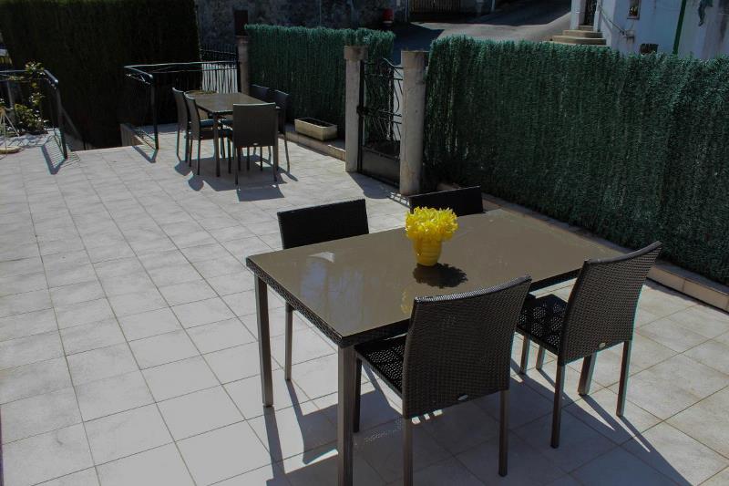 2 Chambres (2 lits 1pl., 1 lit 2 pl.), cuisine, séjour, salle d’eau, terrasse, balcon, barbecue, terrain attenant et clos, salon de jardin, parking, ping-pong commun, jeux enfants, lit et chaise haute pour bébé sur demande. Chauffage central au fuel inclus. Accès Wifi.