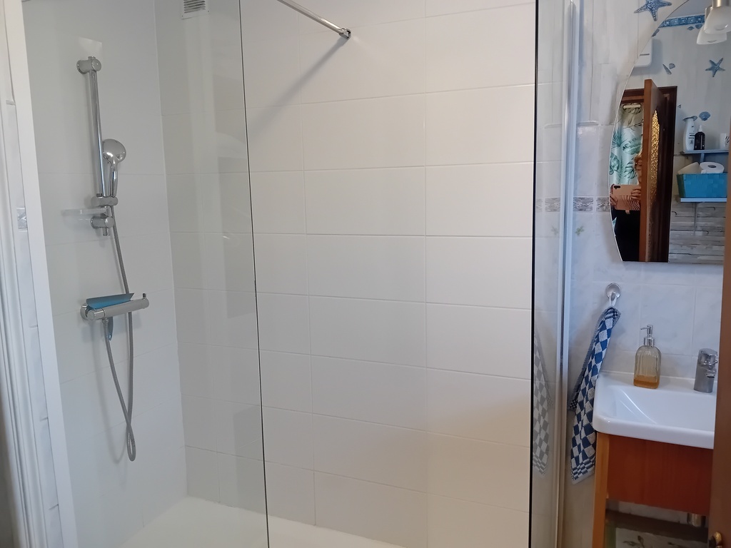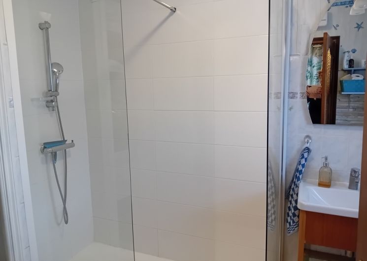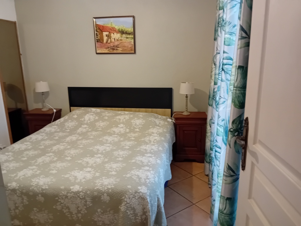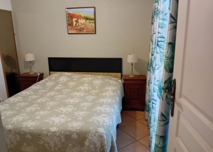 Maison T2 de plain-pied sans vis à vis avec celle du propriétaire composée de : 1 salon confortable – petite cuisine très bien équipée – 1 chambre avec grand lit (king size 160X200) – 1 SdB/WC – douche à l’italienne – Balcon terrasse ombragée. WI-FI – petit animal accepté. Entrée par portail motorisé et parking intérieur – grande véranda avec stores électriques pour profiter de la vue sur jardin très fleuri et soigné – cuisine d’été dans la cour sous le mûrier platane – salon de jardin ombragé – barbecue électrique – transats sur la pelouse – linge de maison fourni – Réservation de 5 jours minimum – possibilité de location au mois hors saison à tarif intéressant.