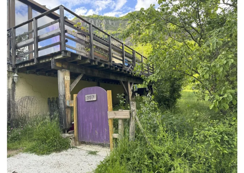 Détente et déconnexion sont au rendez-vous, la rivière coule paisiblement en contrebas, offrant calme et charme à la sortie d’un petit village en pleine campagne.
