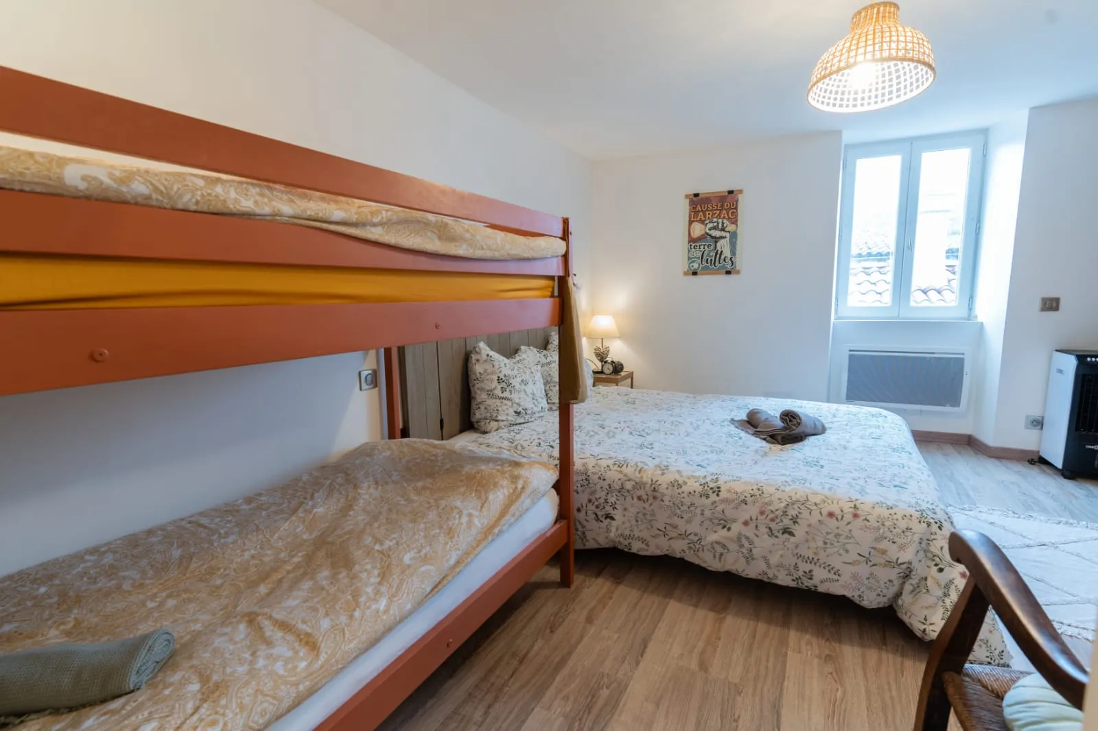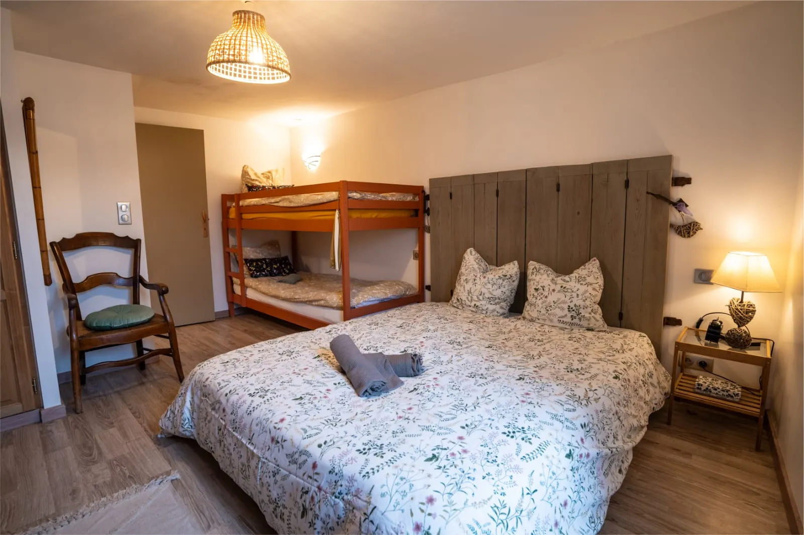 ensuite une chambre avec lit double 160 & lit superposé, avec salle de douche sous toit.