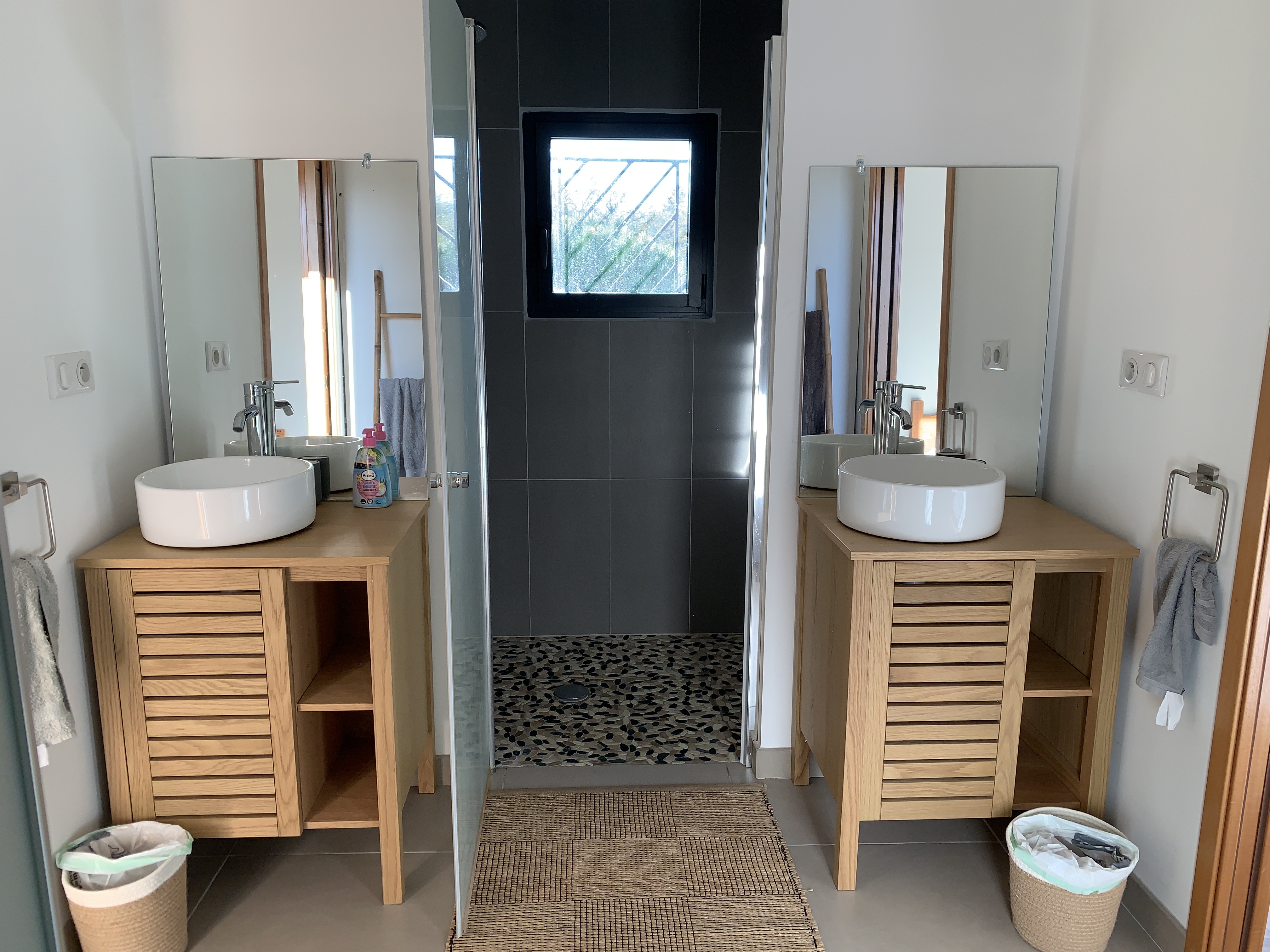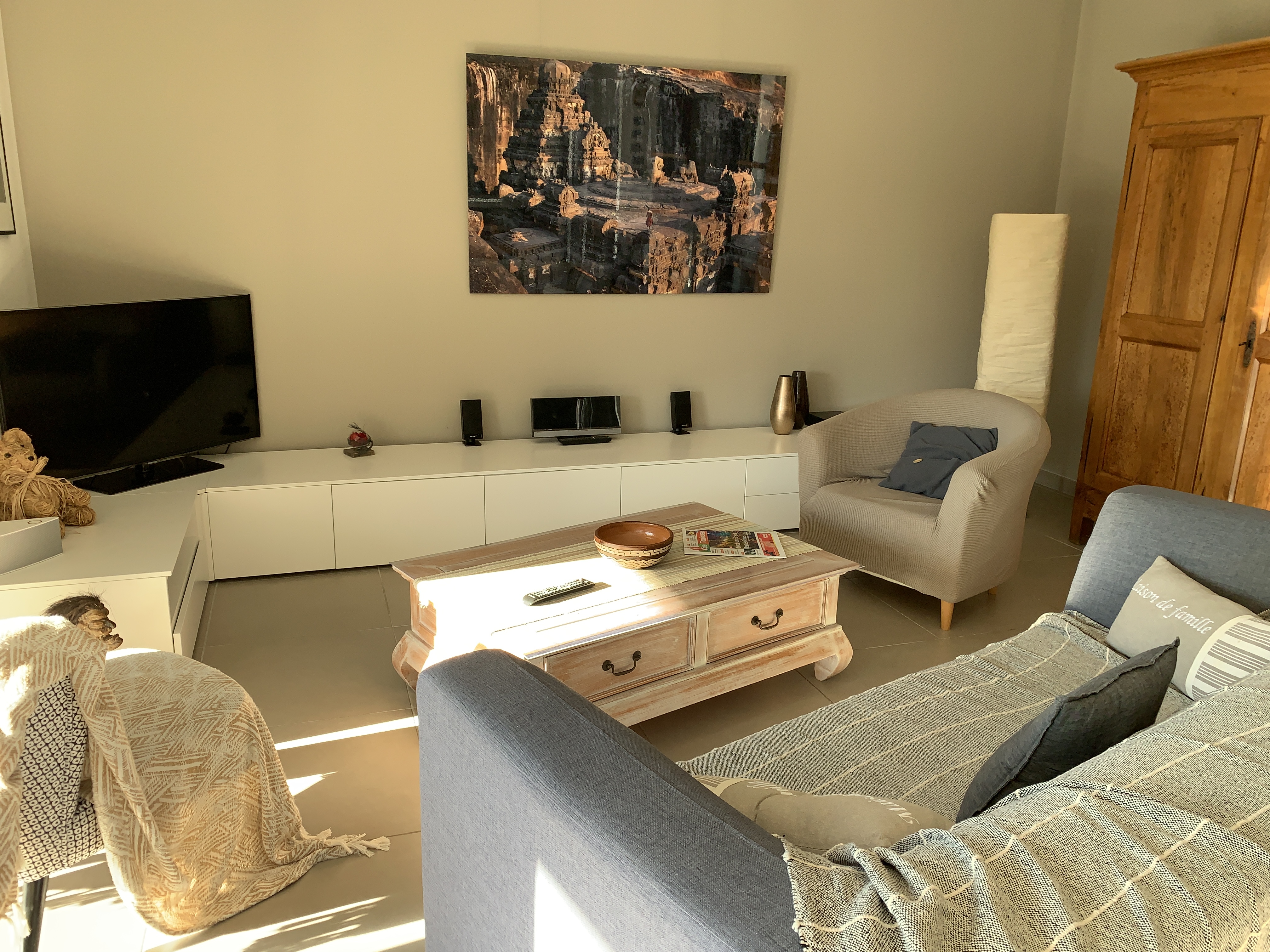 Equipements : micro-ondes, four, cafetière, grille-pain, et bouilloire, télévision, Wi-Fi, lave-linge privatif, lave-vaisselle, sèche-serviettes, sèche-cheveux, matériel de repassage, jeux de société, climatisation dans les 3 chambres. Les draps, le linge de toilette et de maison sont fournis.