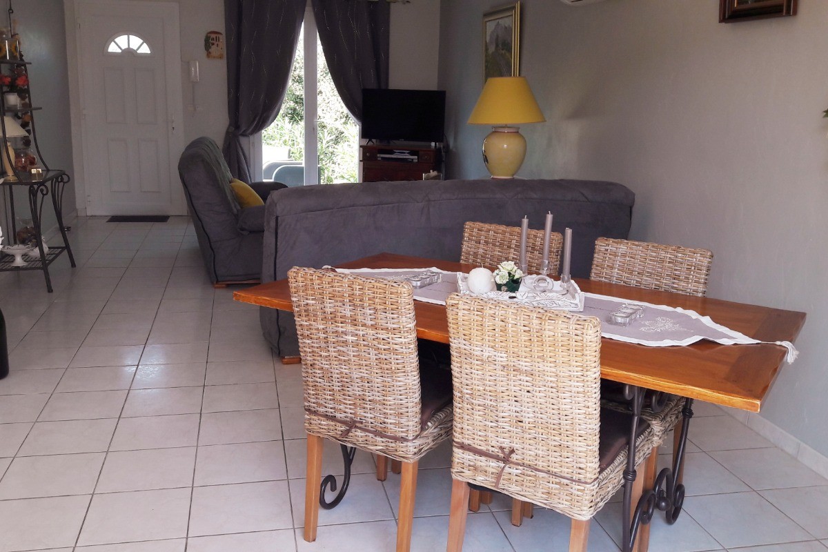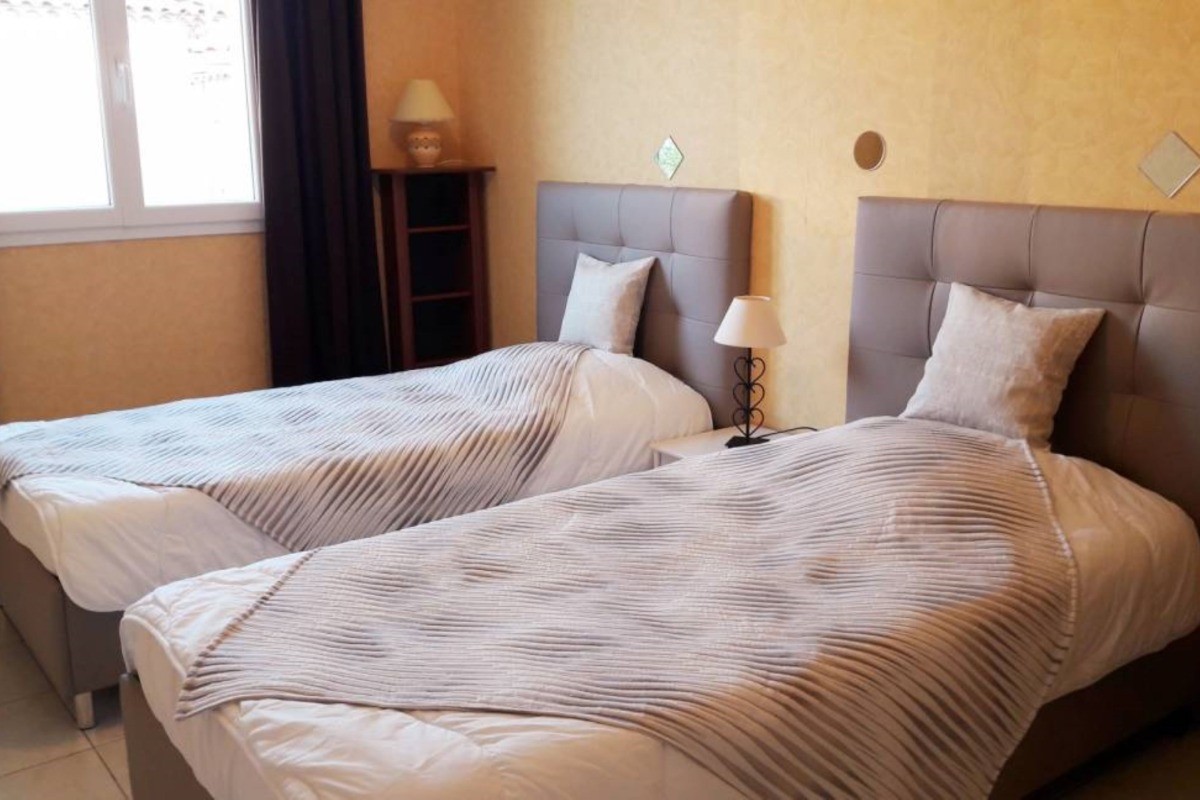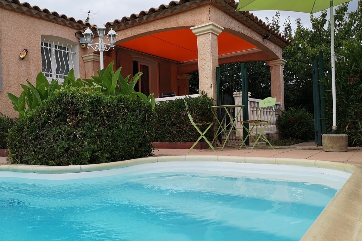 _Bienvenue à NEZIGNAN L’EVEQUE, aux portes de Pézenas._ Découvrez notre maison de vacances avec piscine privée située à 15 mn des plages. C’est la destination idéale pour des vacances en famille ou entre amis. Cette charmante location de vacances dans l’Hérault offre une superficie de 100m2, elle peut accueillir jusqu’à 8 personnes. Elle comprend 4 chambres : * 2 chambres avec chacune un lit double de 140cm. * 2 chambres avec chacune 2 lits simples de 90 cm. Pour votre confort, la maison dispose de deux salles d’eau et de deux WC. La cuisine, spacieuse et entièrement équipée comprend une plaque à induction, un lave vaisselle, un four, un micro-ondes, un réfrigérateur-congélateur et tout le nécessaire pour cuisiner comme à la maison. Un lave linge ainsi qu’une table et un fer à repasser sont également à votre disposition. Coté détente, la maison de vacances est équipée de Wifi et d’une télévision. L’atout majeur de cette maison est sans aucun doute son extérieur : Deux terrasses, dont une qui est ombragée grâce à un auvent, ainsi qu’une grande piscine (7X4 – Prof 1,50m), clôturée pour votre sécurité et abritée par un dôme, permettant une baignade selon les années de mai à septembre. FORFAIT LINGE DE MAISON : 15€ / Personne – (Draps « avec lits faits à l’arrivée », Serviettes « 1 grande et 1 petite » , Torchons, Nappes, Tapis de bains). FORFAIT MENAGE « FIN DE SEJOUR » (Sur demande) : 130€. Vous pouvez stationner deux voitures à l’intérieur de la propriété. Veuillez noter qu’il est interdit de recharger des véhicules hybrides et/ou électriques sur place _(Recharge possible à 500m de la villa)_ et que la maison est non fumeur. Electricité : (200KW/Semaine – « Si surplus, il sera à régler lors du départ ») _Pour réserver votre séjour ou obtenir de plus amples informations, n’hésitez pas à nous contacter par téléphone au 06-19-62-22-25._ _ _
