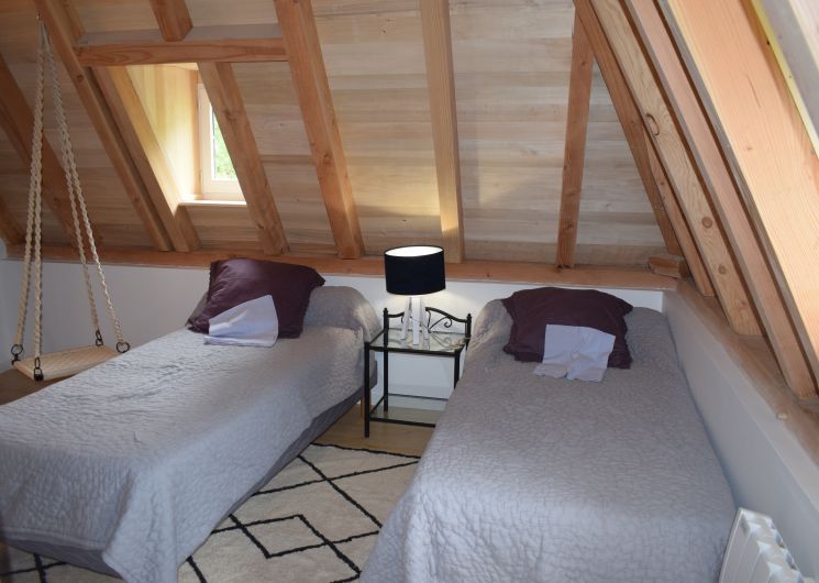4 chambes avec salle de bain privée dont 1 avec baignoire. – Rez de chaussée deux chambres avec lit 160 cm avec salle d’eau. -2è étage une chambre avec deux lits 90 cm et une chambre avec un lit en 160 cm avec salle d’eau dont une avec baignoire. Au premier étage, cuisine et salle à manger communiquant avec le salon.