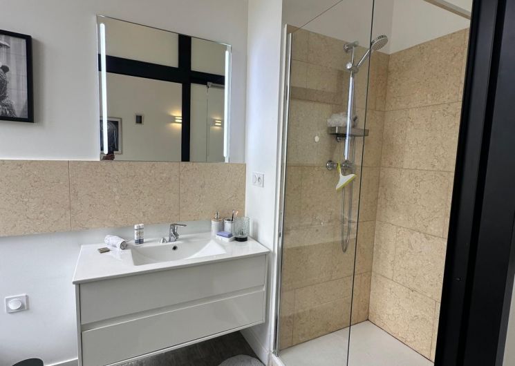 L’hébergement se compose d’une chambre élégante, d’un salon lumineux équipé de deux canapés-lits, d’une cuisine entièrement équipée, ainsi que d’une salle de bains contemporaine.