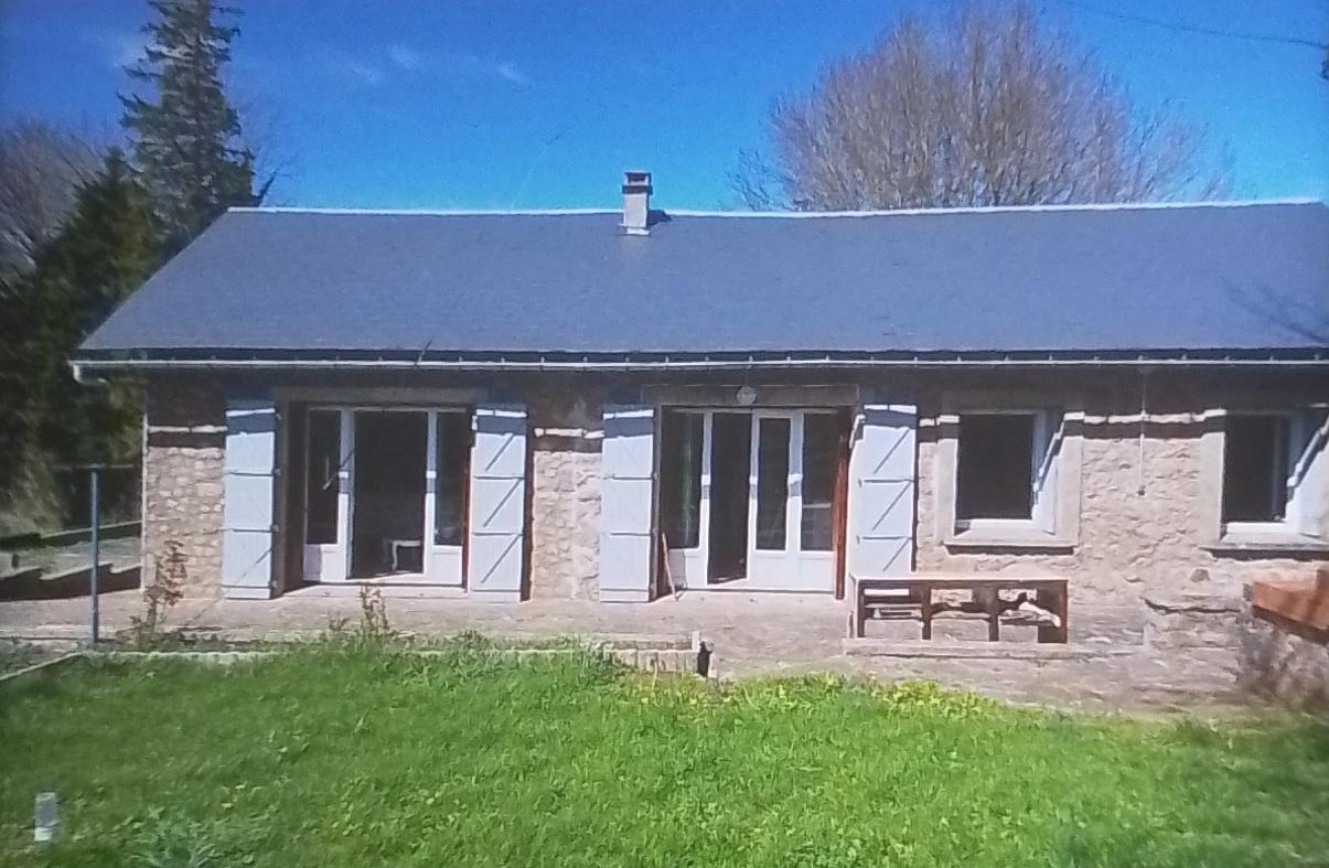 Maison en pierre de plain pied de 85 m2 sur terrain de 800m2, 3 chambres, proche lacs et commerces. Idéal randonnées, pêche et champignons.