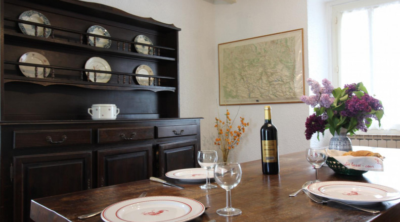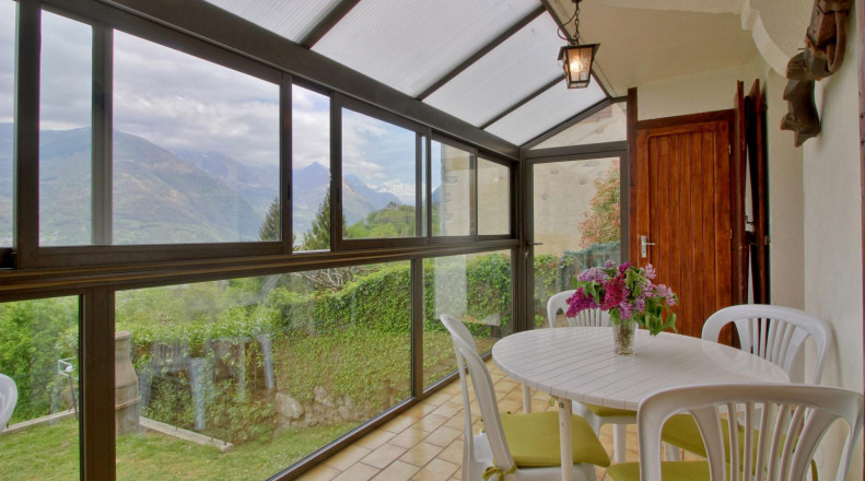 Gîte indépendant avec véranda et balcon panoramiques. Jardin clos en terrasse prolongé par un verger. Sur 3 niveaux : 4 Chambres (4 lits 2 pl., 3 lits 1 pl., lit enfant), séjour/coin cuisine, salle d’eau, salle de bains, 2 wc, lave linge, lave-vaisselle, chauffage central gaz, salon de jardin, barbecue, local à skis. Charges en sus. .