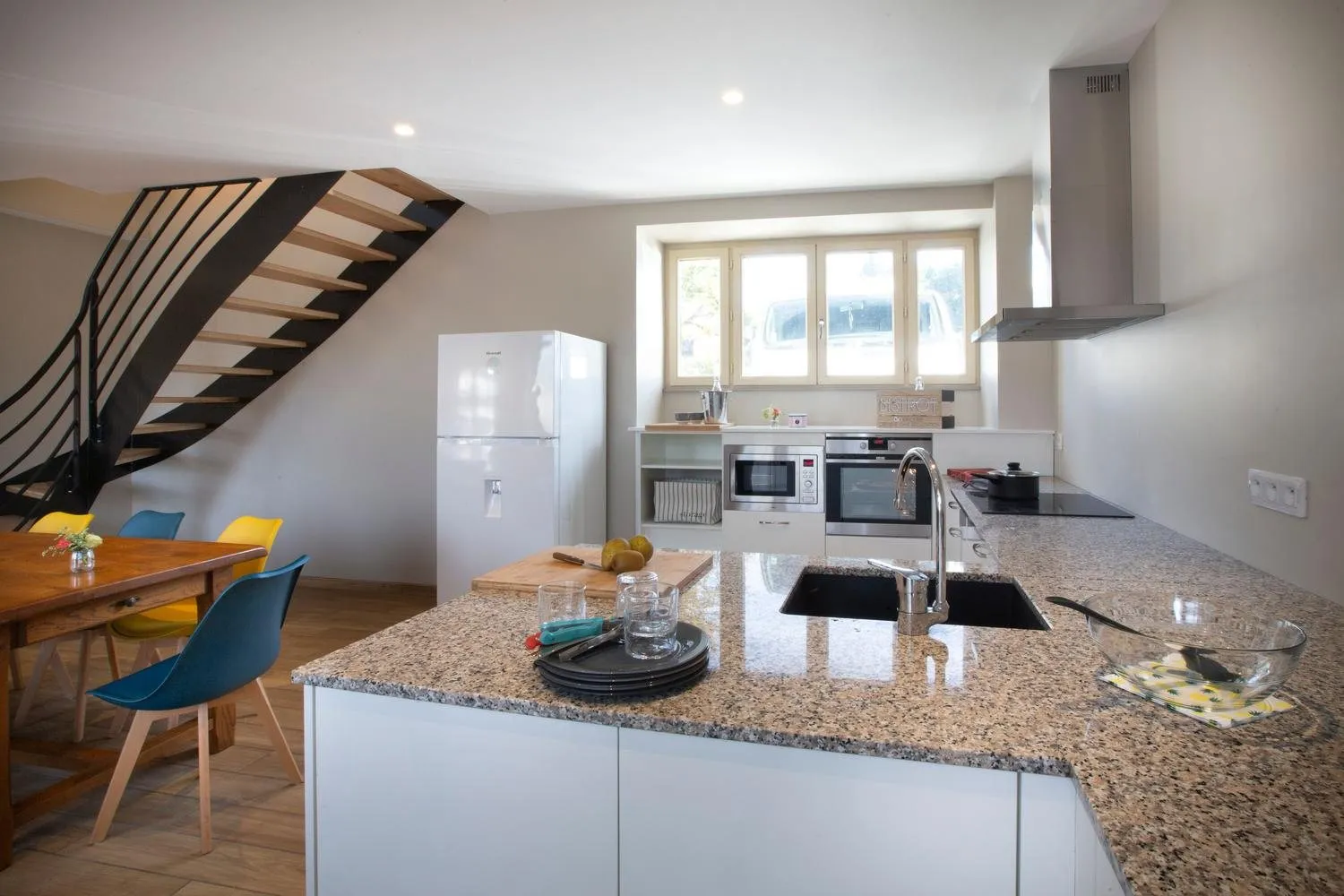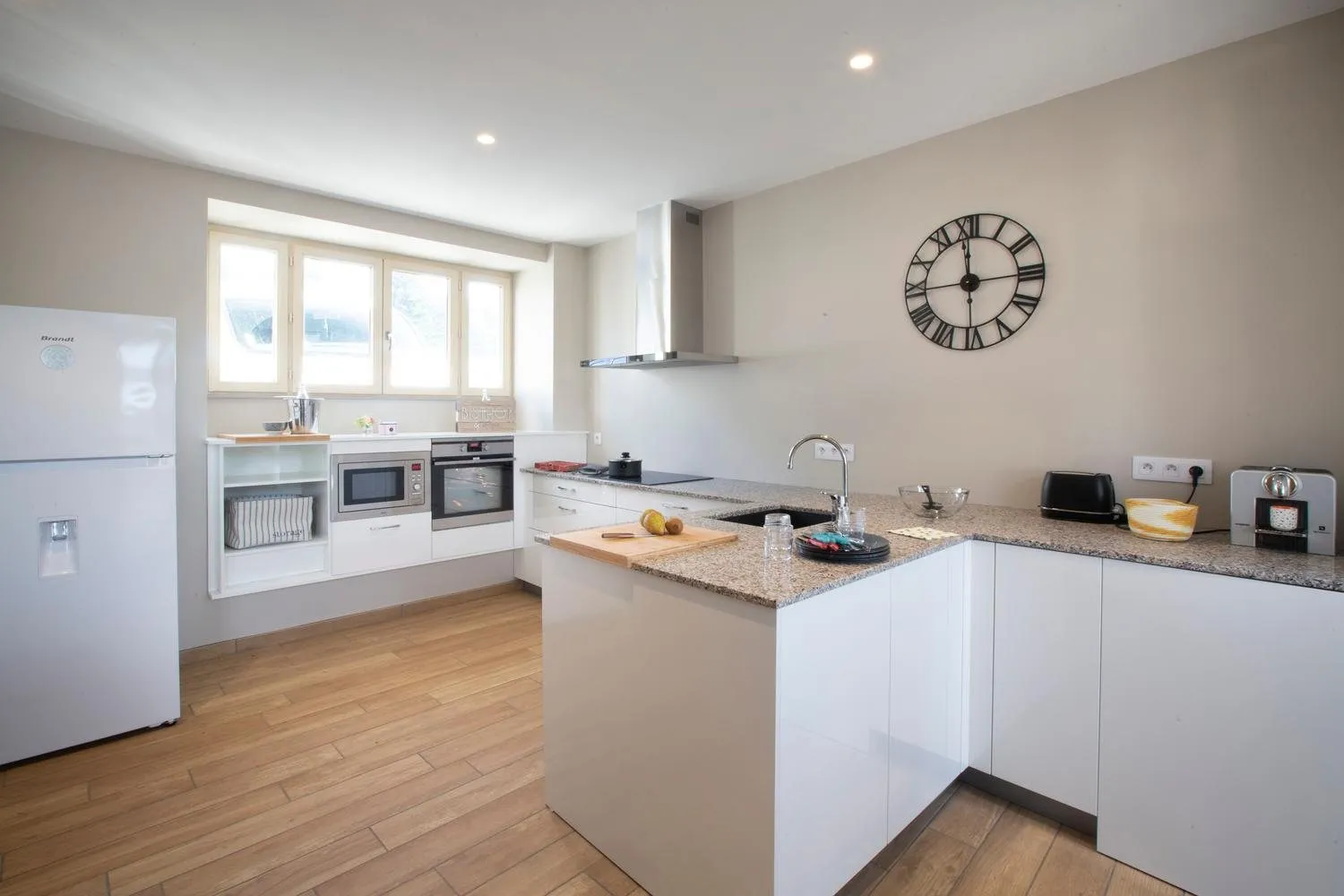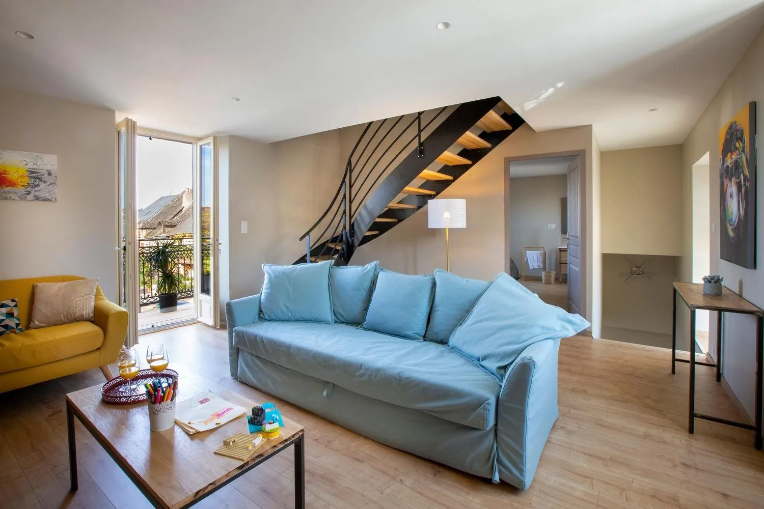 L’appartement est au premier étage et comporte un grand séjour avec une cuisine ouverte. Lave-linge, télévision, cuisine équipée … Possibilité de location de linge de lit et de toilette. Activités et commerces à proximité.