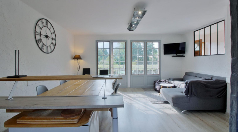 4 chambres (1 lit 1pl. 3 lits 2pl., lit bébé), salle à manger/coin-cuisine, salon, 2 salles d’eau, 2 WC dont 1 indépendant, équipement bébé (lit parapluie, parc, chaise haute), jardin privatif clos, balcon, parking communs aux 2 gîtes, aire de jeux commune, chauffage électrique inclus, WIFI. Un autre gîte de France mitoyen adossé sur la partie arrière. .