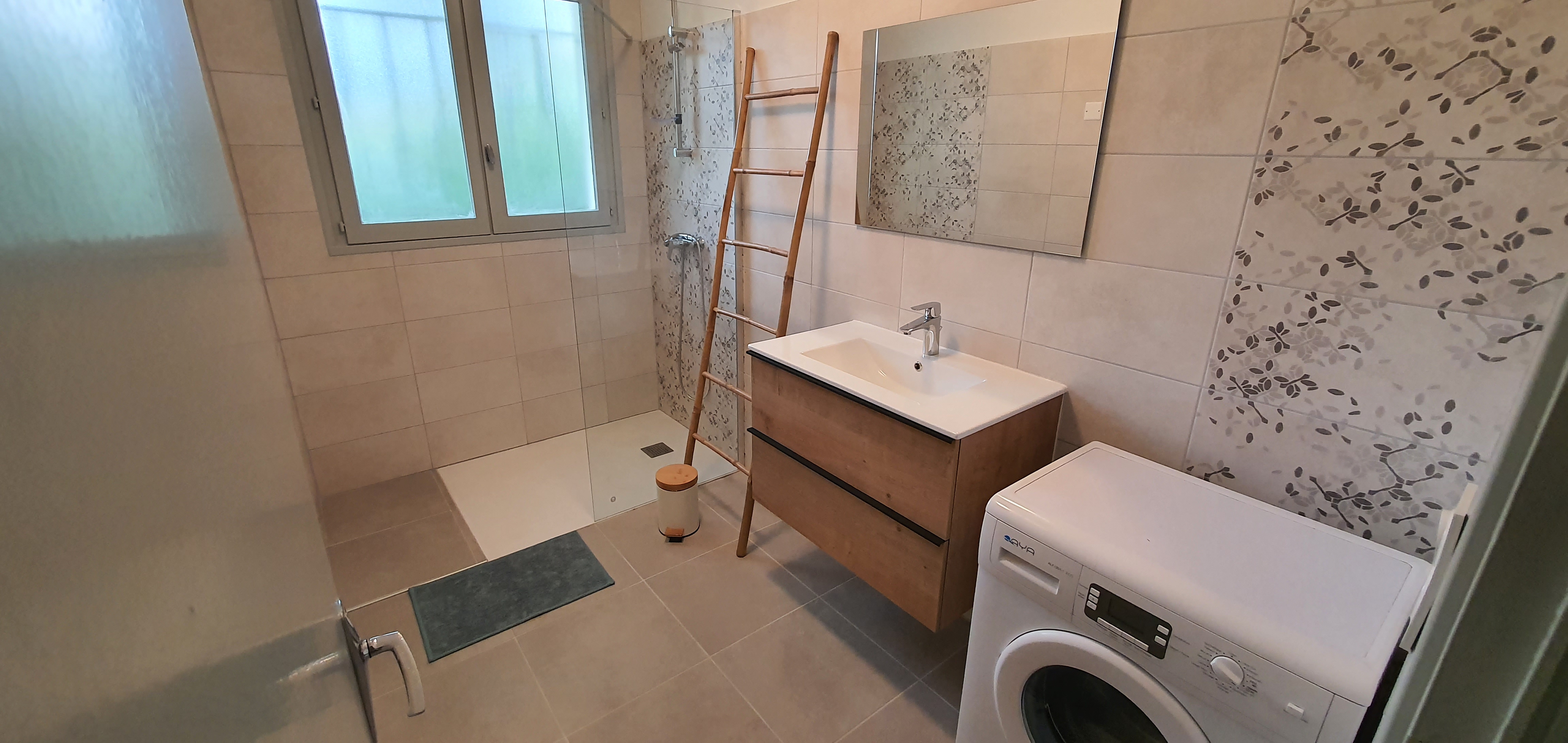 Sa salle d’eau avec douche à l’italienne et ses WC séparés.