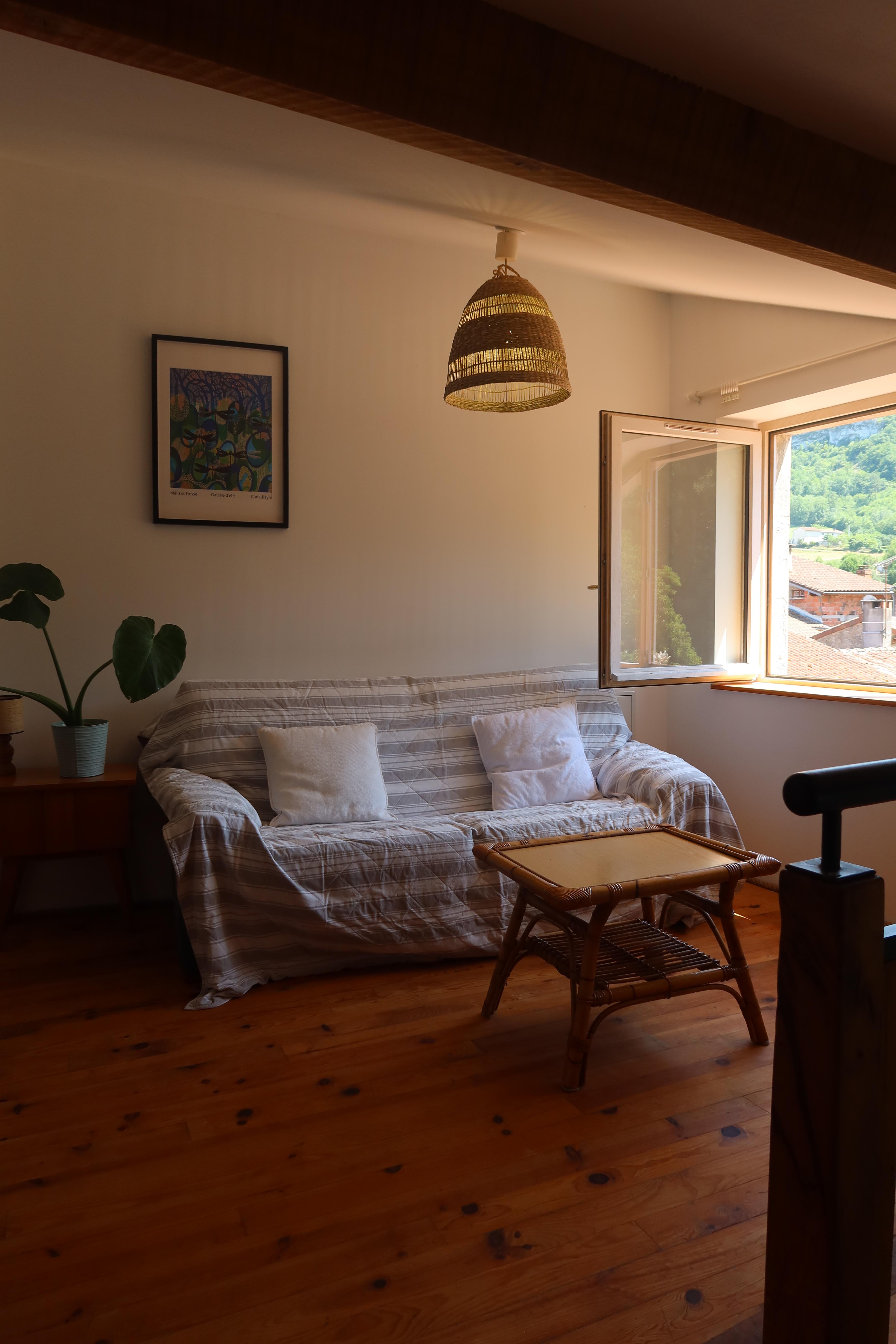 Entièrement rénové, très lumineux avec une belle vue sur les toits du village et sur la nature alentour.