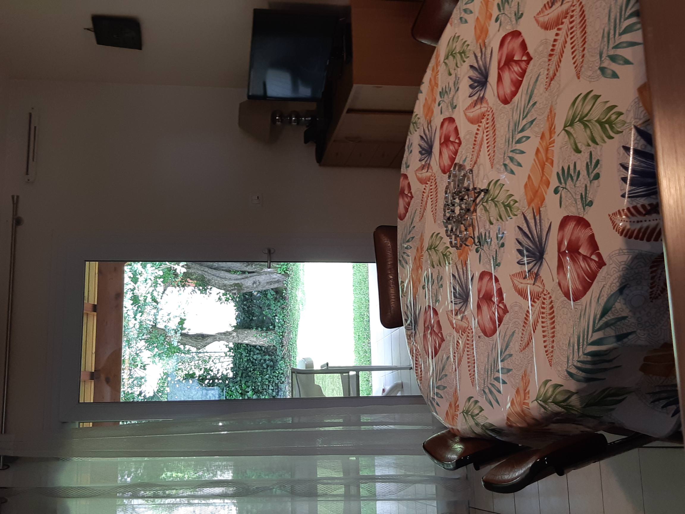 Maison mitoyenne d’un côté, d’une superficie de 52 m², sur deux niveaux, avec terrasse couverte, jardinet clos commun, parking et garage privés. Au rez de chaussée : – hall extérieur d’entrée indépendante avec placard ski. – pièce séjour avec coin cuisine équipé : plaque 4 feux, four, lave-vaisselle, frigo-congélateur, micro-ondes, lave-linge, espace repas et coin salon: TV écran plat couleur, DVD. – WC indépendants A l’étage : – chambre avec un lit en 140, placard – chambre avec un lit en 140 et deux lits en 90 superposés + un coin lavabo/douche et placard. – salle d’eau indépendante Infos pratiques : – Animaux non admis – Chauffage électrique , lit parapluie et chaise bébé – jardinet, terrasse couverte, salon de jardin et barbecue l’été – Garage voiture et parking privatif .