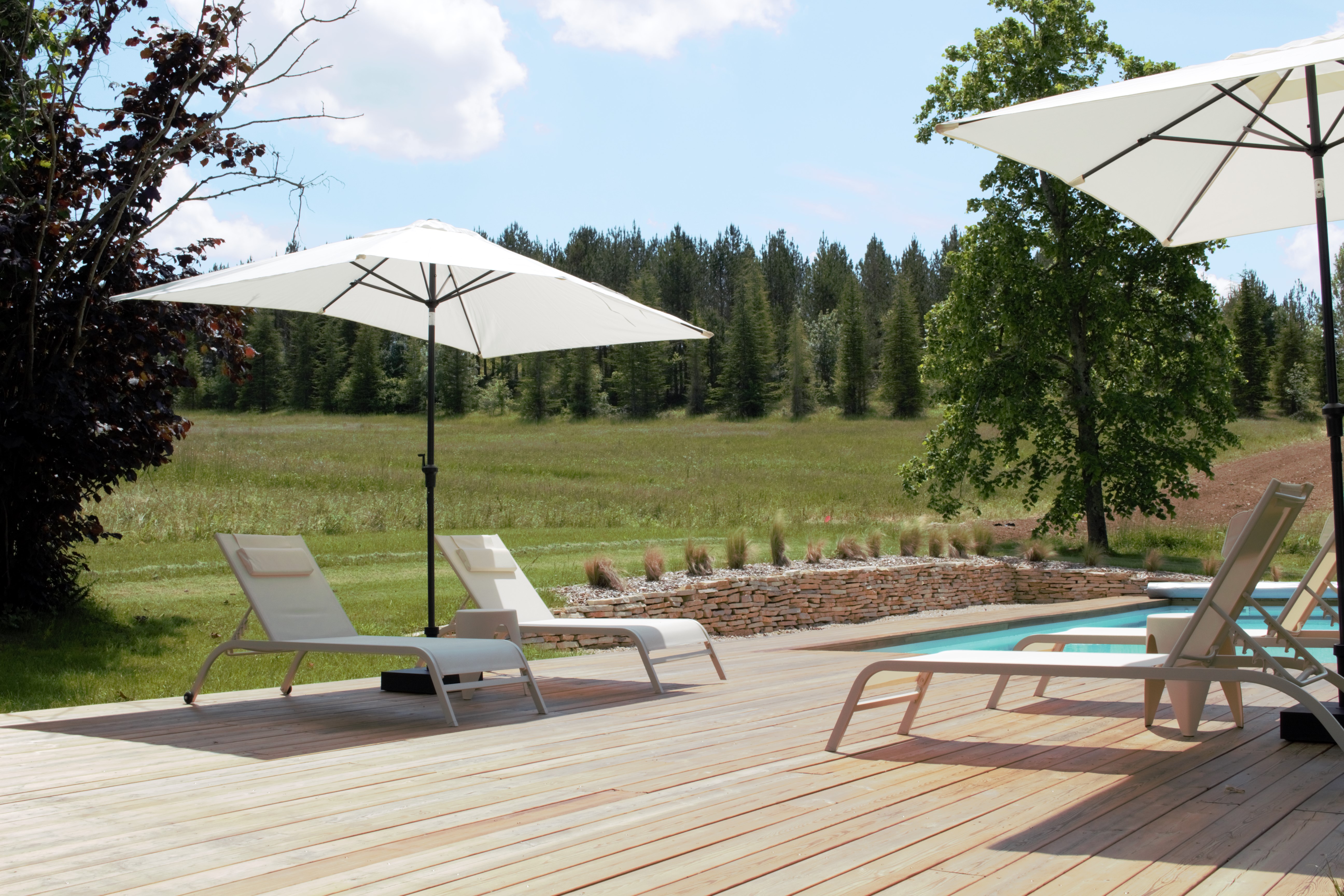Dehors, une magnifique piscine de 11 mètres et sa terrasse en bois, offrent une magnifique vue sur la campagne environnante.