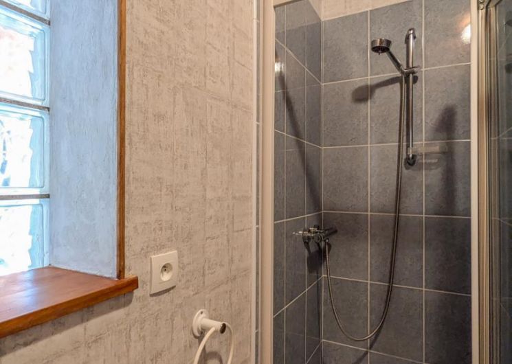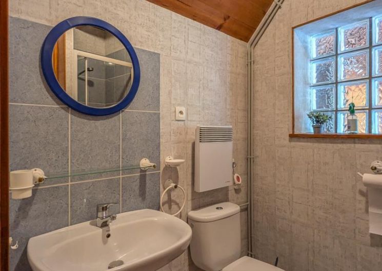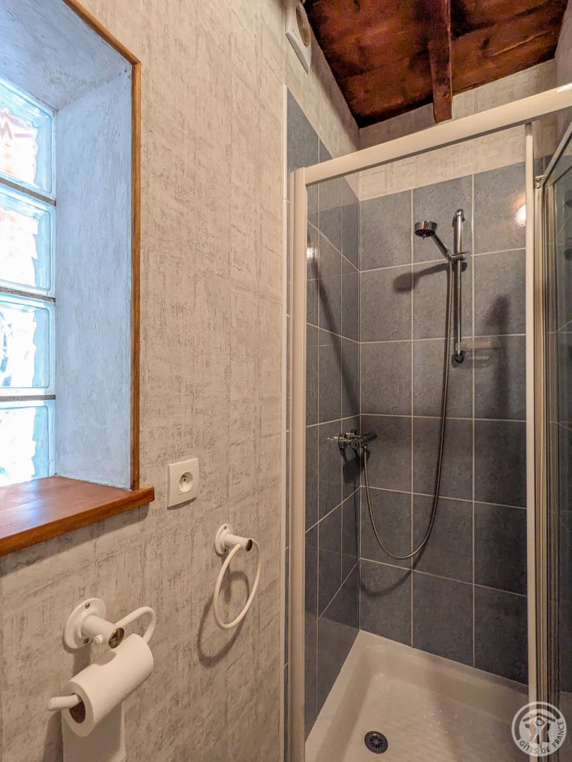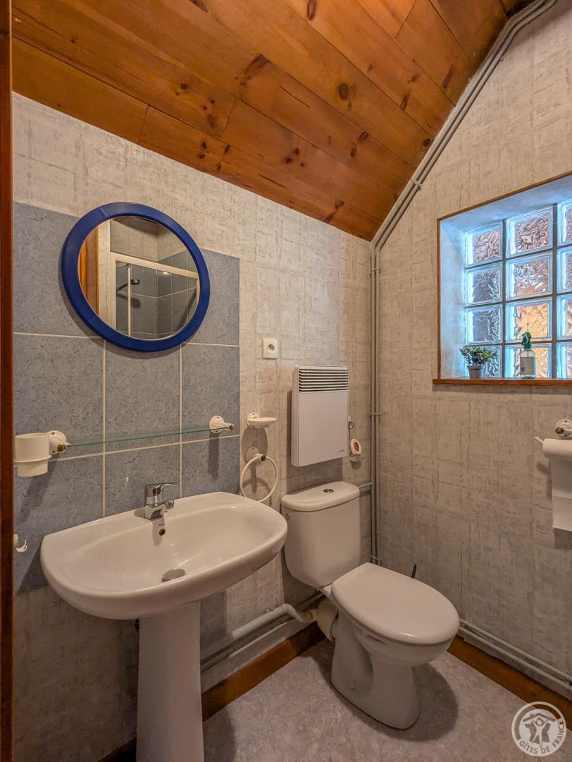– accès à l’étage par la terrasse couverte : grande loggia avec salon détente, chambre (1 lit 2 personnes en 140cm) avec salle d’eau/WC. Mini-congélateur, cafetière Senseo, plancha à gaz. Transats mis à disposition